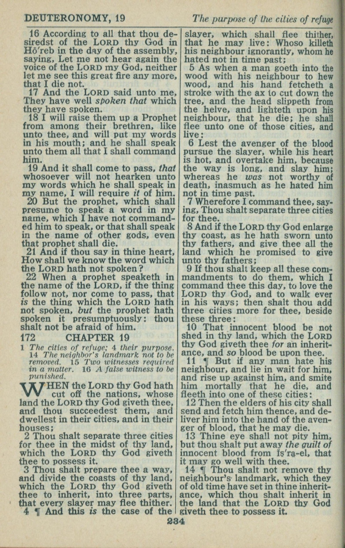 1946年King James Version 申命記 18 章 16 節到 19 章 14 節