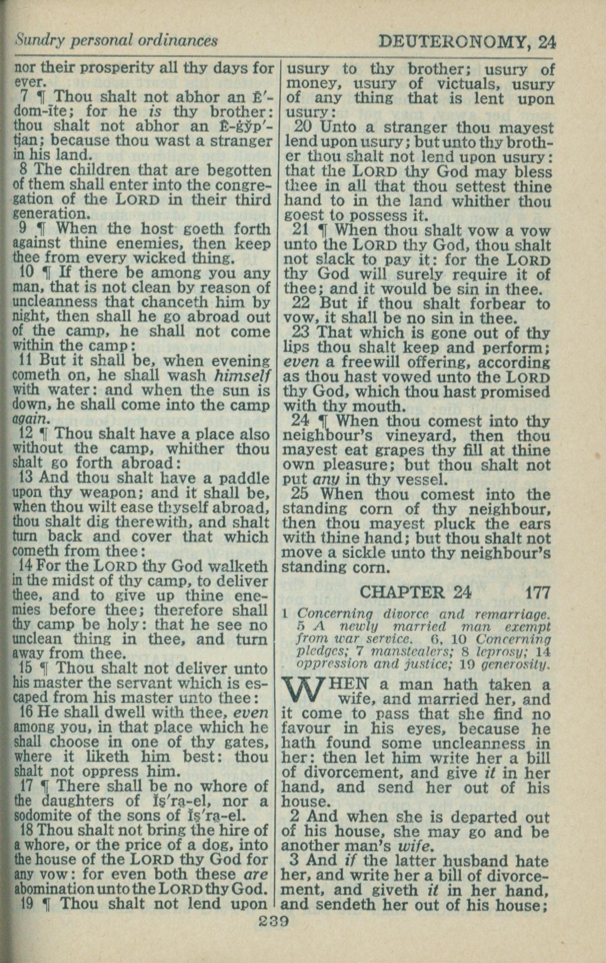 1946年King James Version 申命記 23 章 7 節到 24 章 3 節