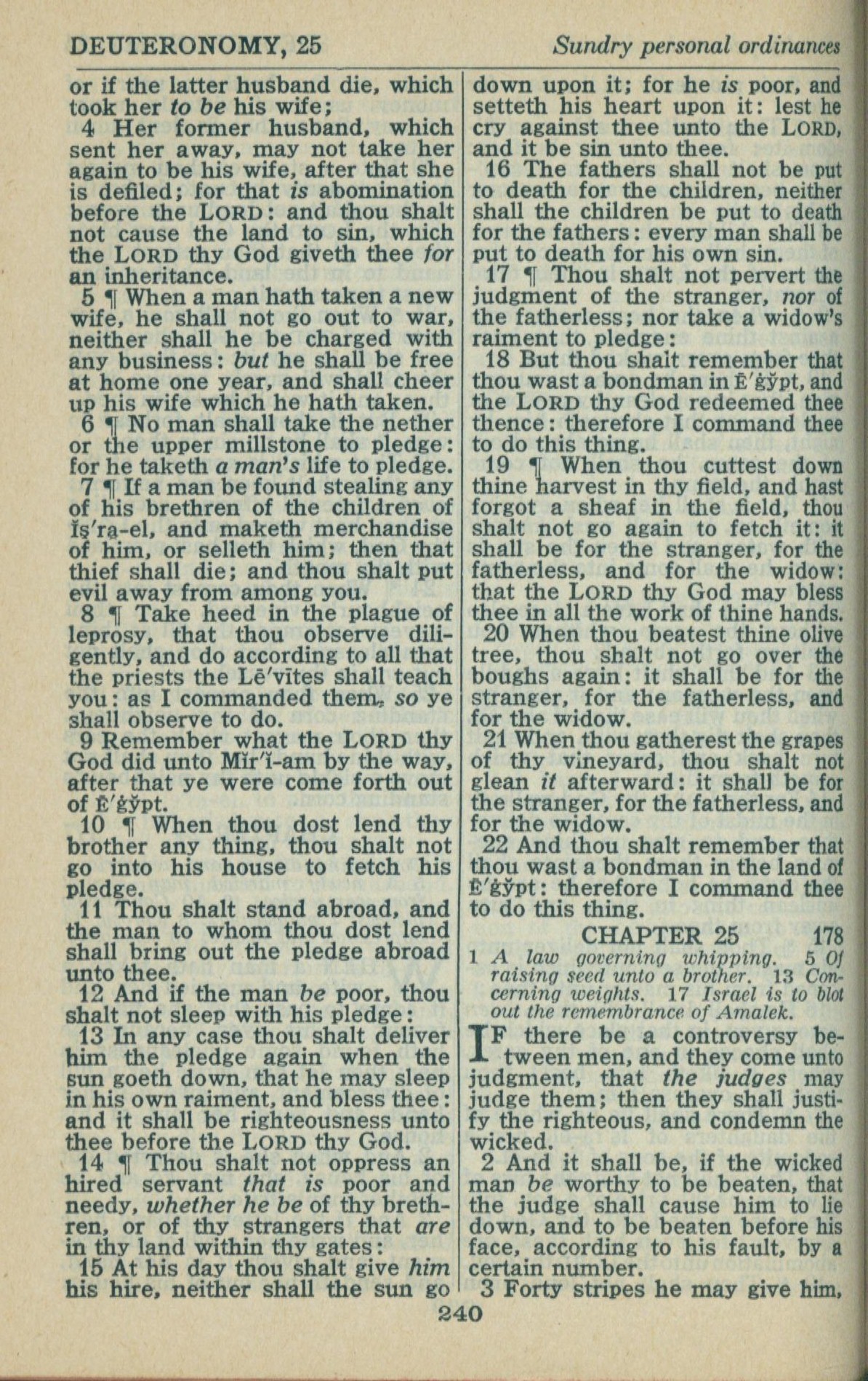 1946年King James Version 申命記 24 章 4 節到 25 章 3 節