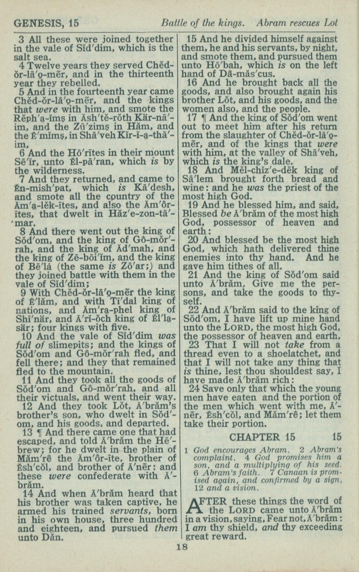 1946年King James Version 創世記 14 章 3 節到 15 章 1 節