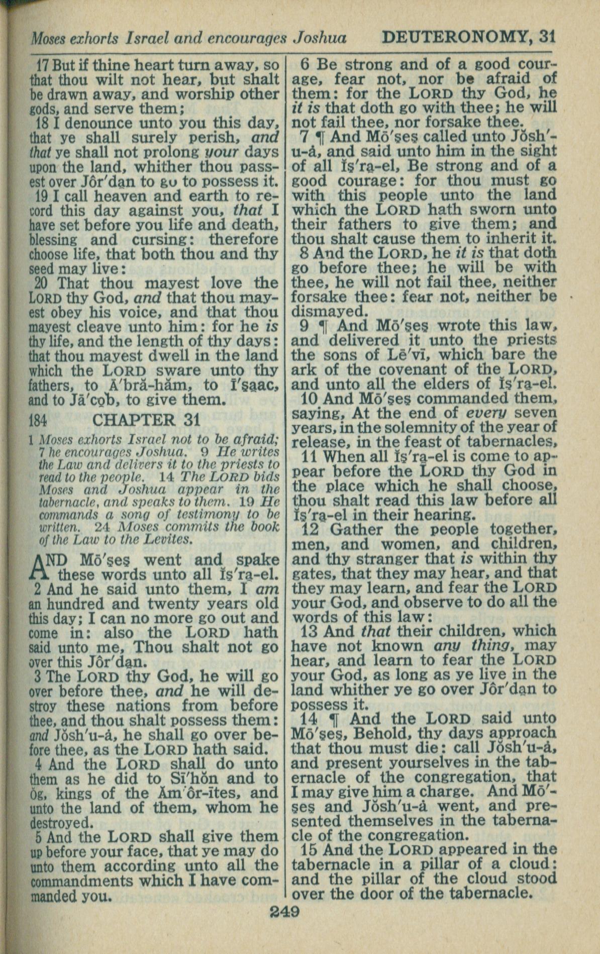 1946年King James Version 申命記 30 章 17 節到 31 章 15 節