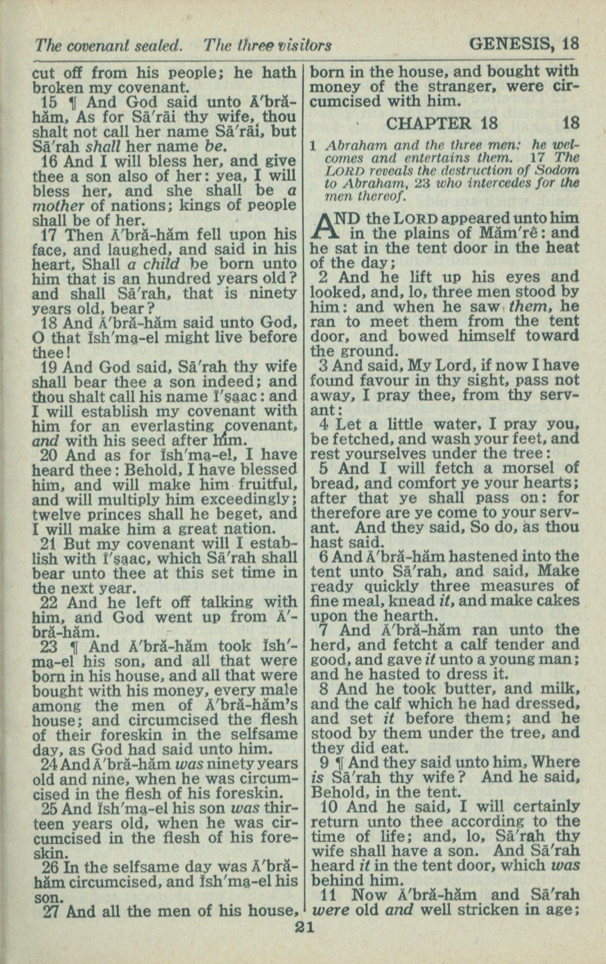 1946年King James Version 創世記 17 章 15 節到 18 章 11 節