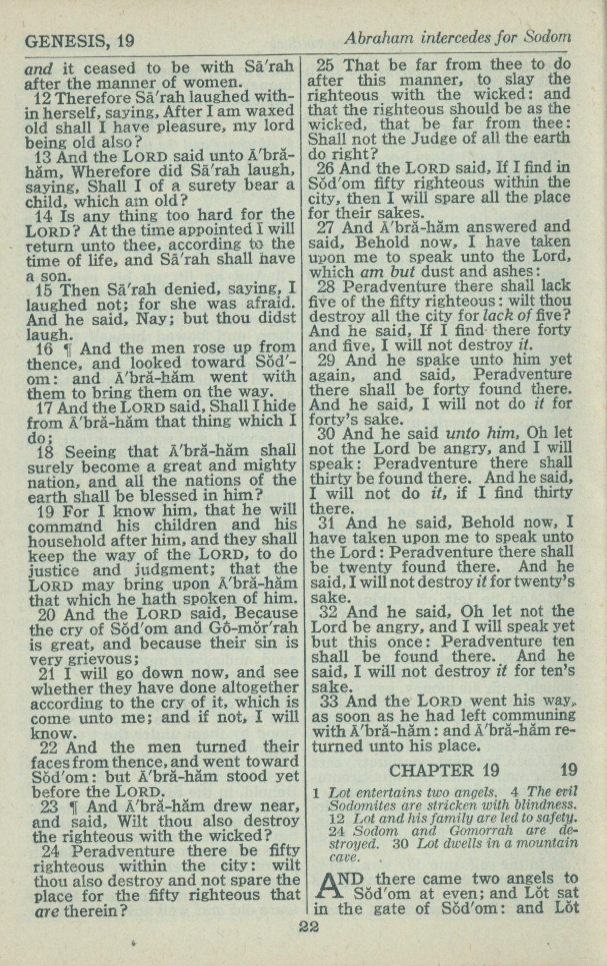 1946年King James Version 創世記 18 章 12 節到 19 章 1 節