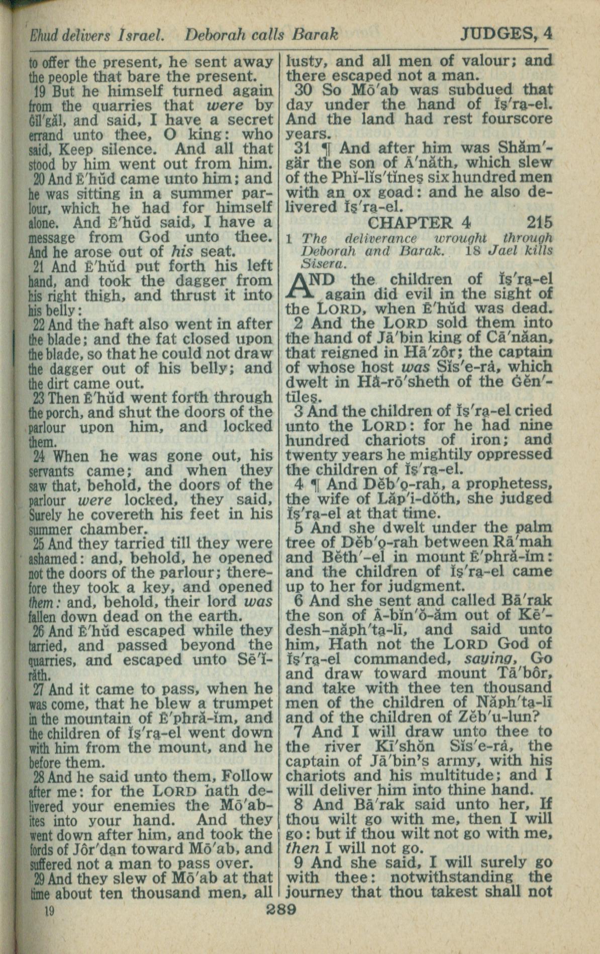 1946年King James Version 士師記 3 章 19 節到 4 章 9 節