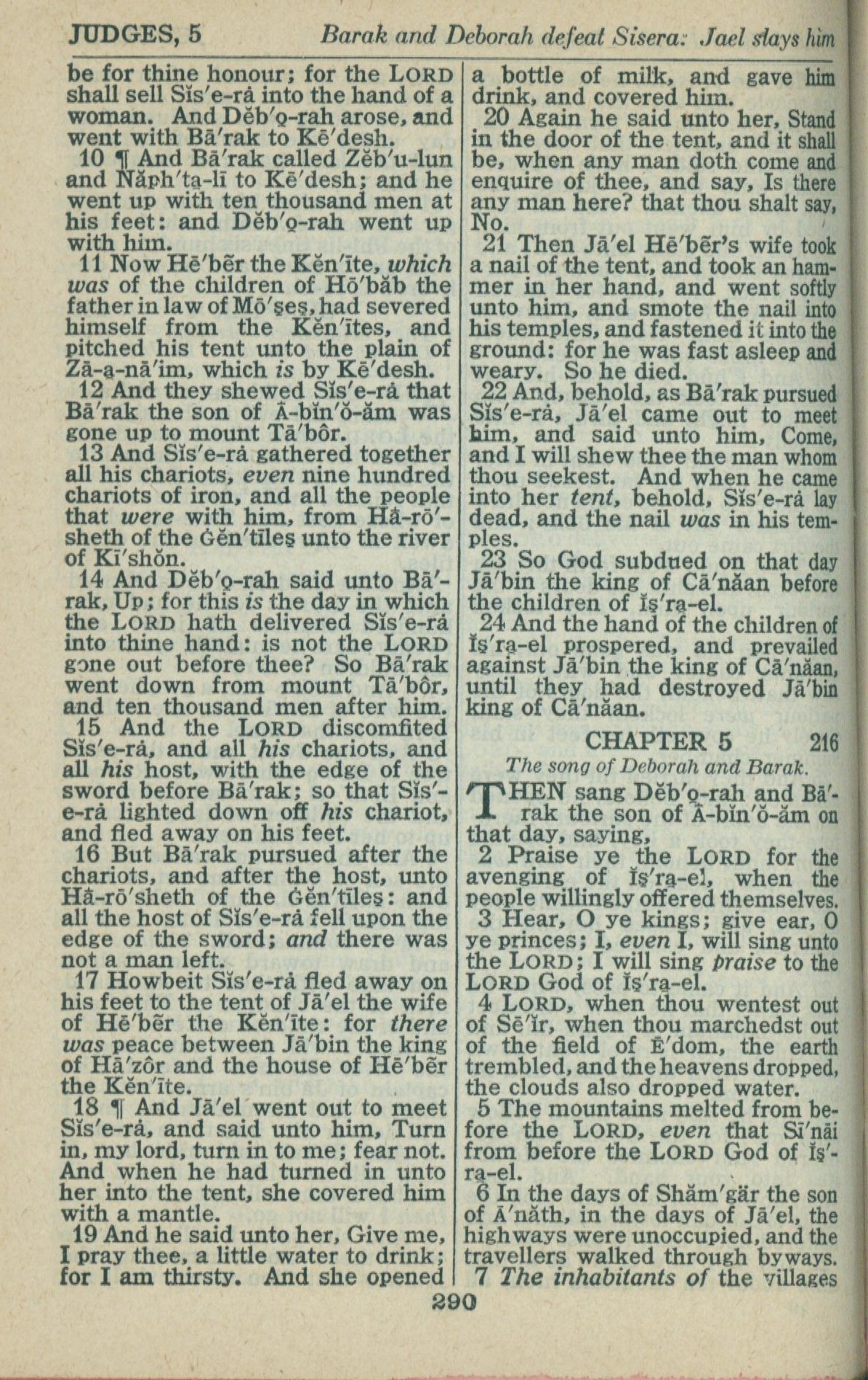 1946年King James Version 士師記 4 章 10 節到 5 章 7 節