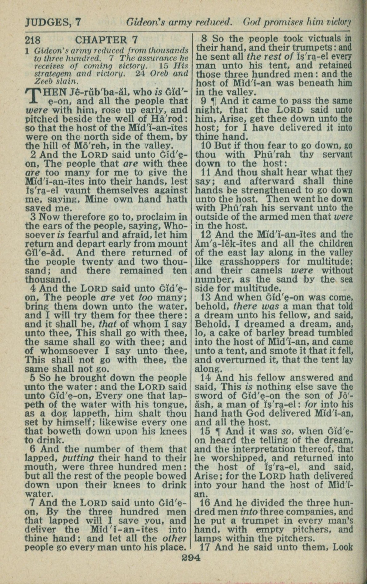1946年King James Version 士師記 7 章 1 節到 7 章 17 節