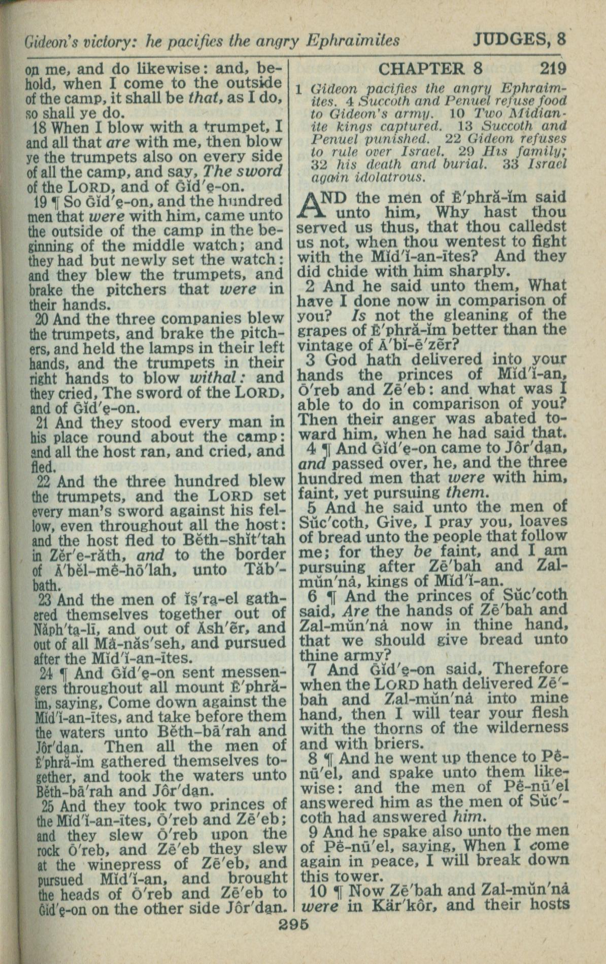1946年King James Version 士師記 7 章 18 節到 8 章 10 節
