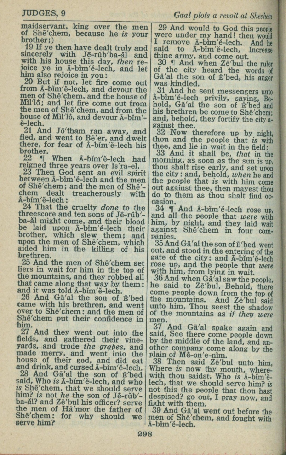 1946年King James Version 士師記 9 章 19 節到 9 章 39 節