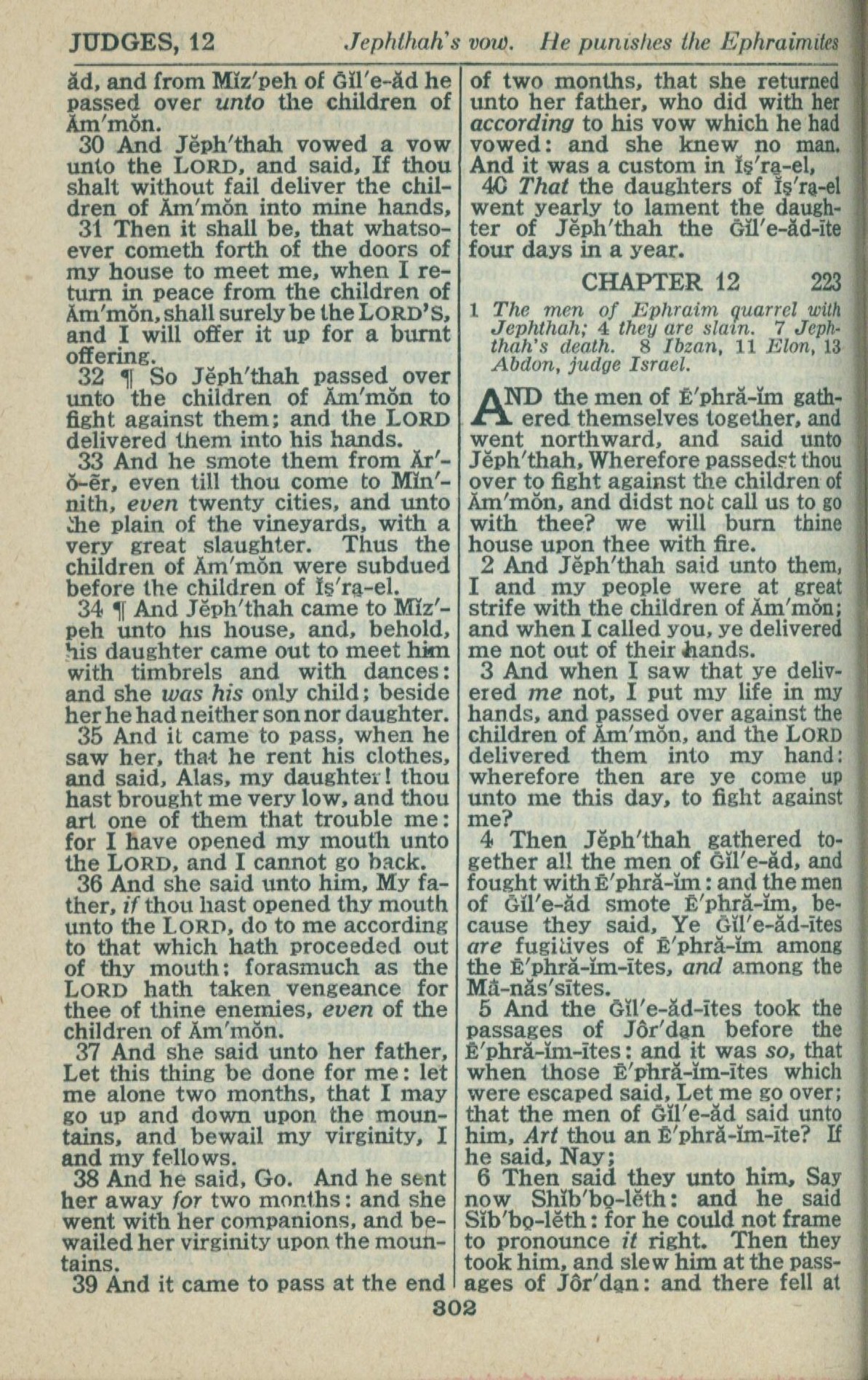 1946年King James Version 士師記 11 章 30 節到 12 章 6 節