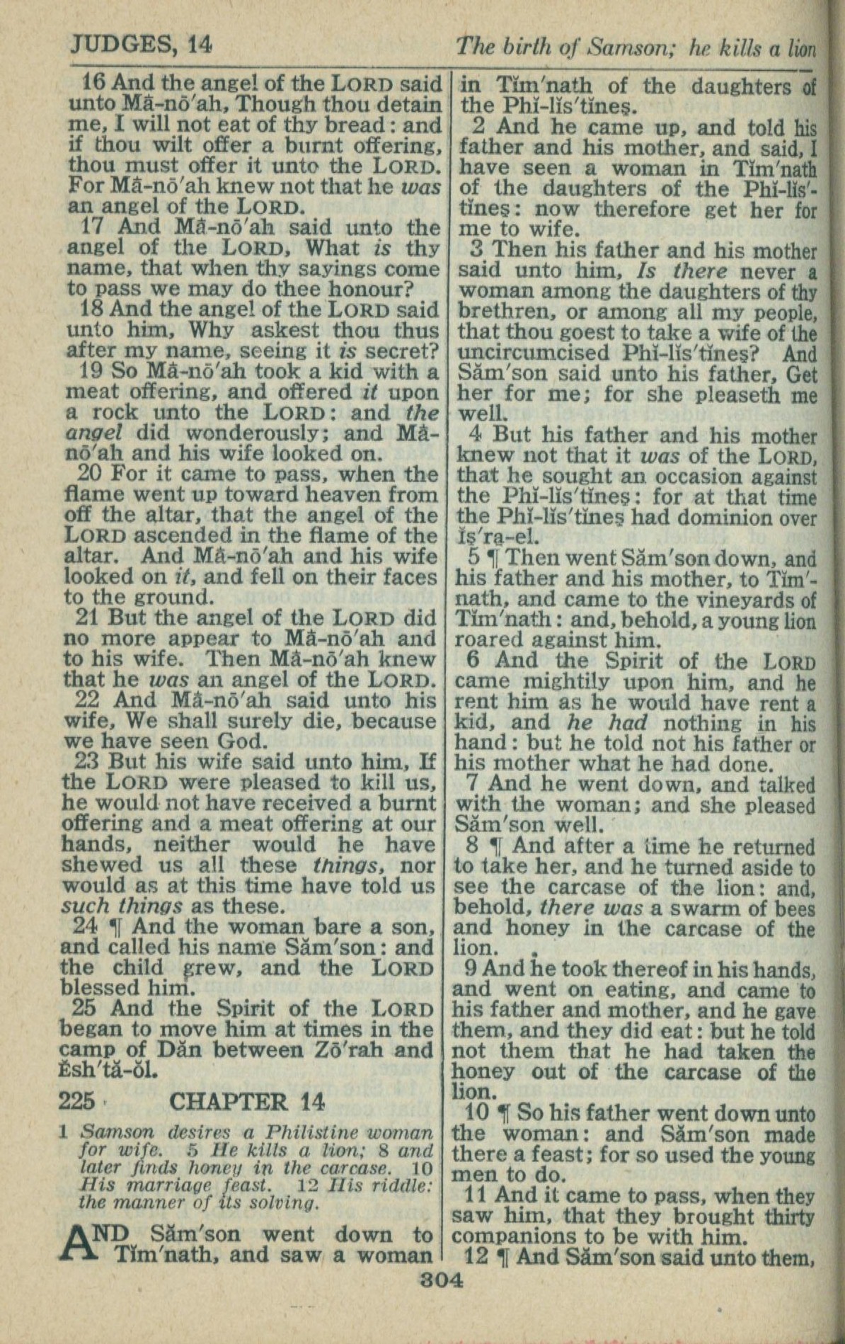 1946年King James Version 士師記 13 章 16 節到 14 章 12 節
