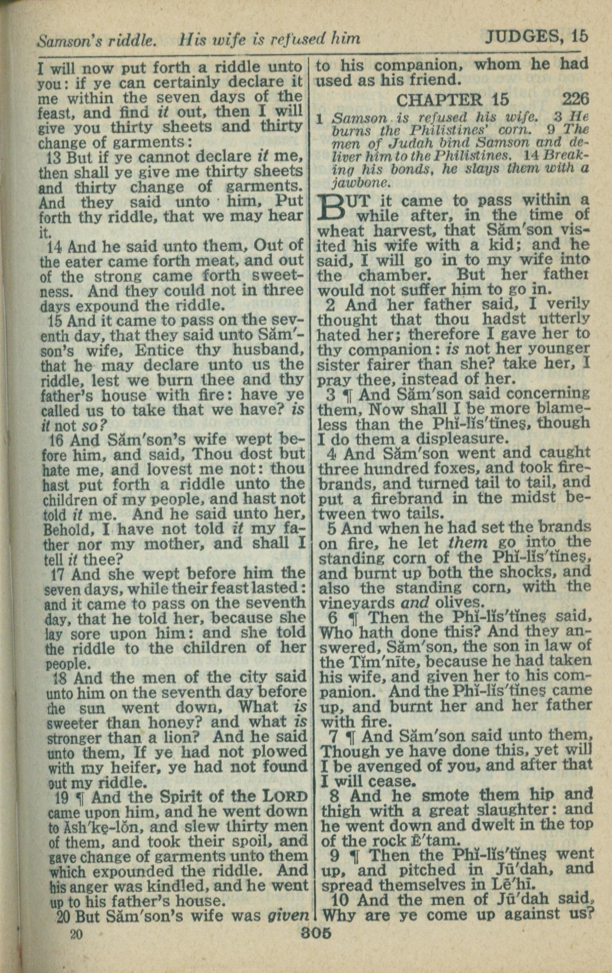 1946年King James Version 士師記 14 章 13 節到 15 章 10 節