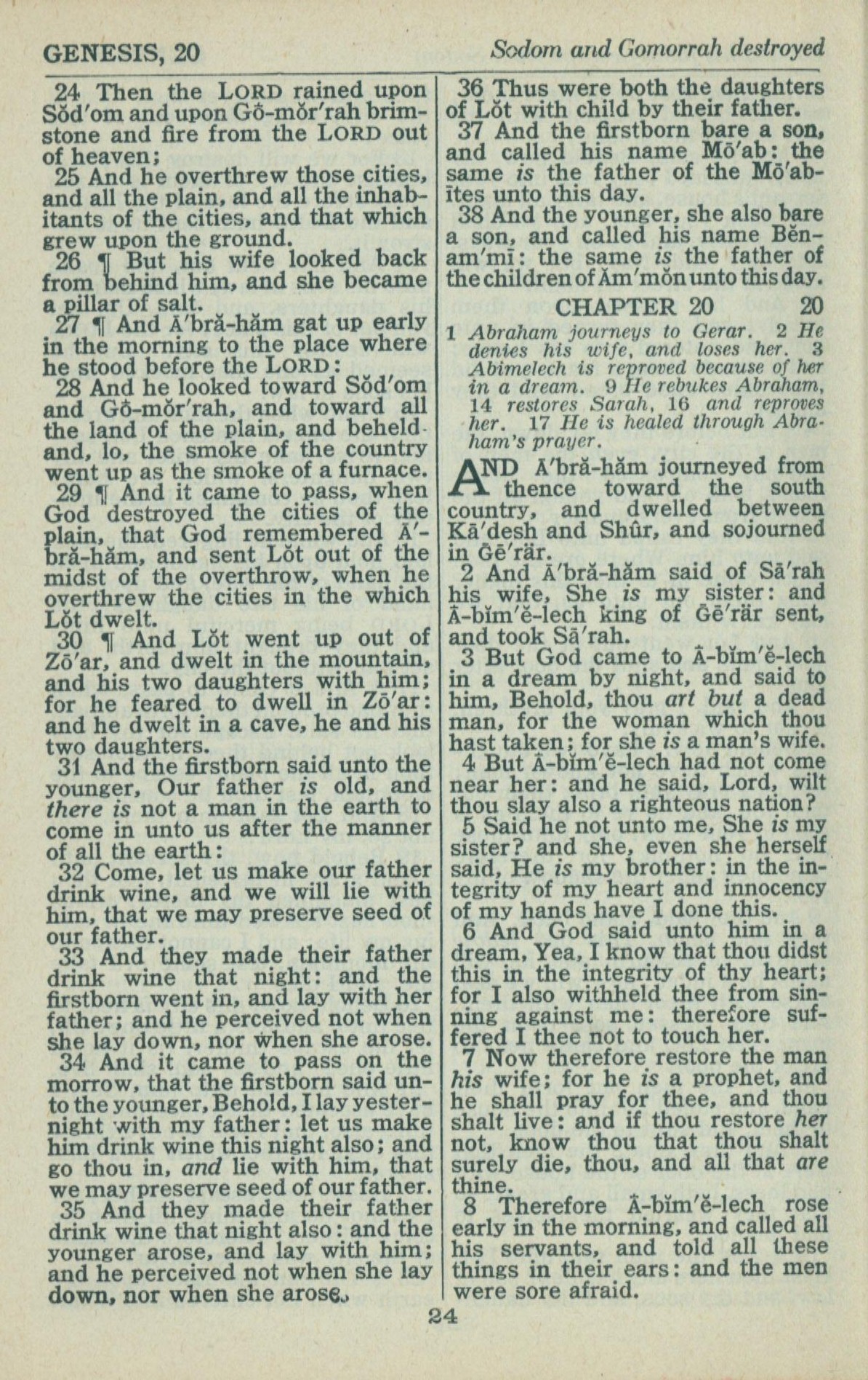 1946年King James Version 創世記 19 章 24 節到 20 章 8 節
