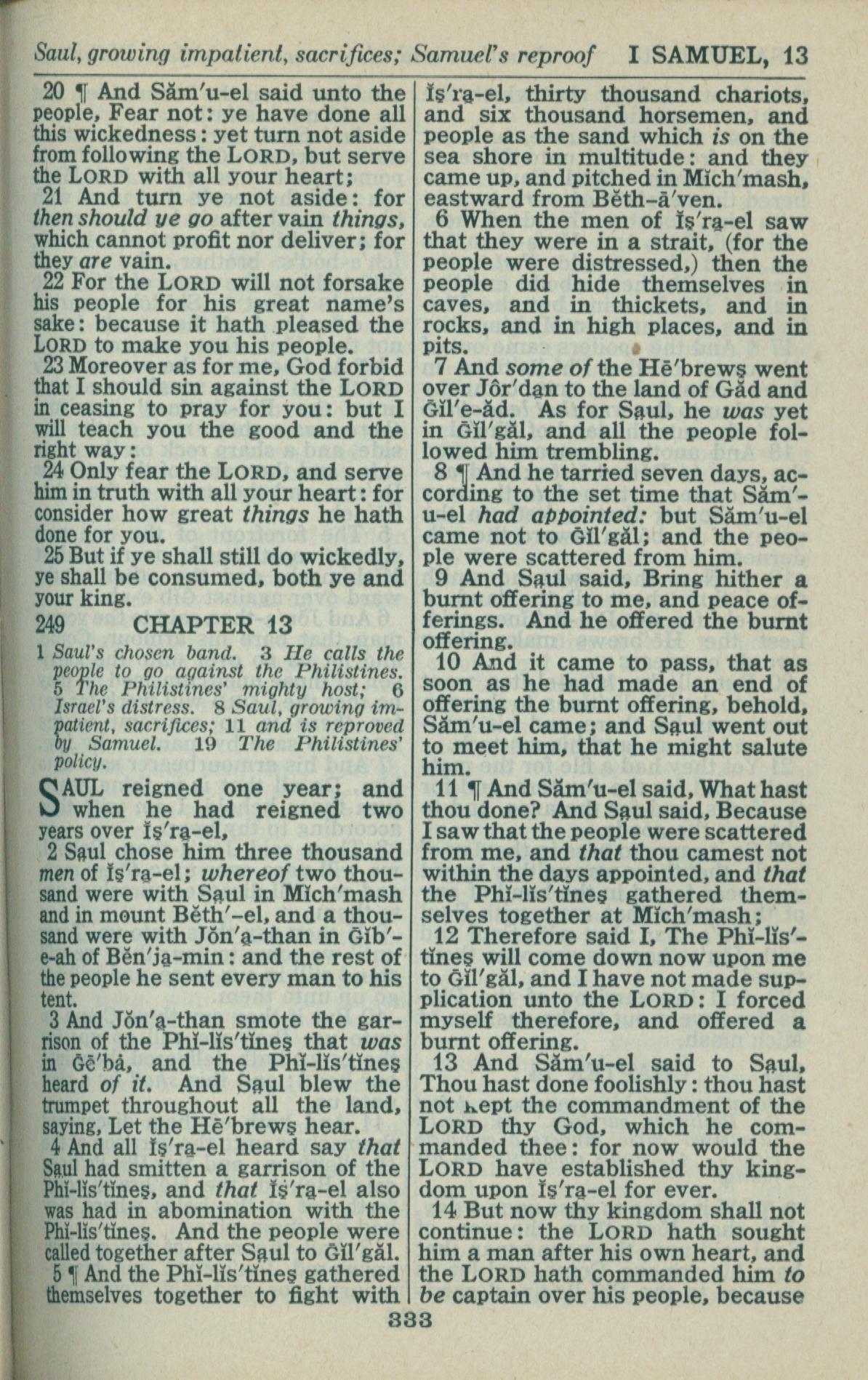 1946年King James Version 撒母耳記上 12 章 20 節到 13 章 14 節