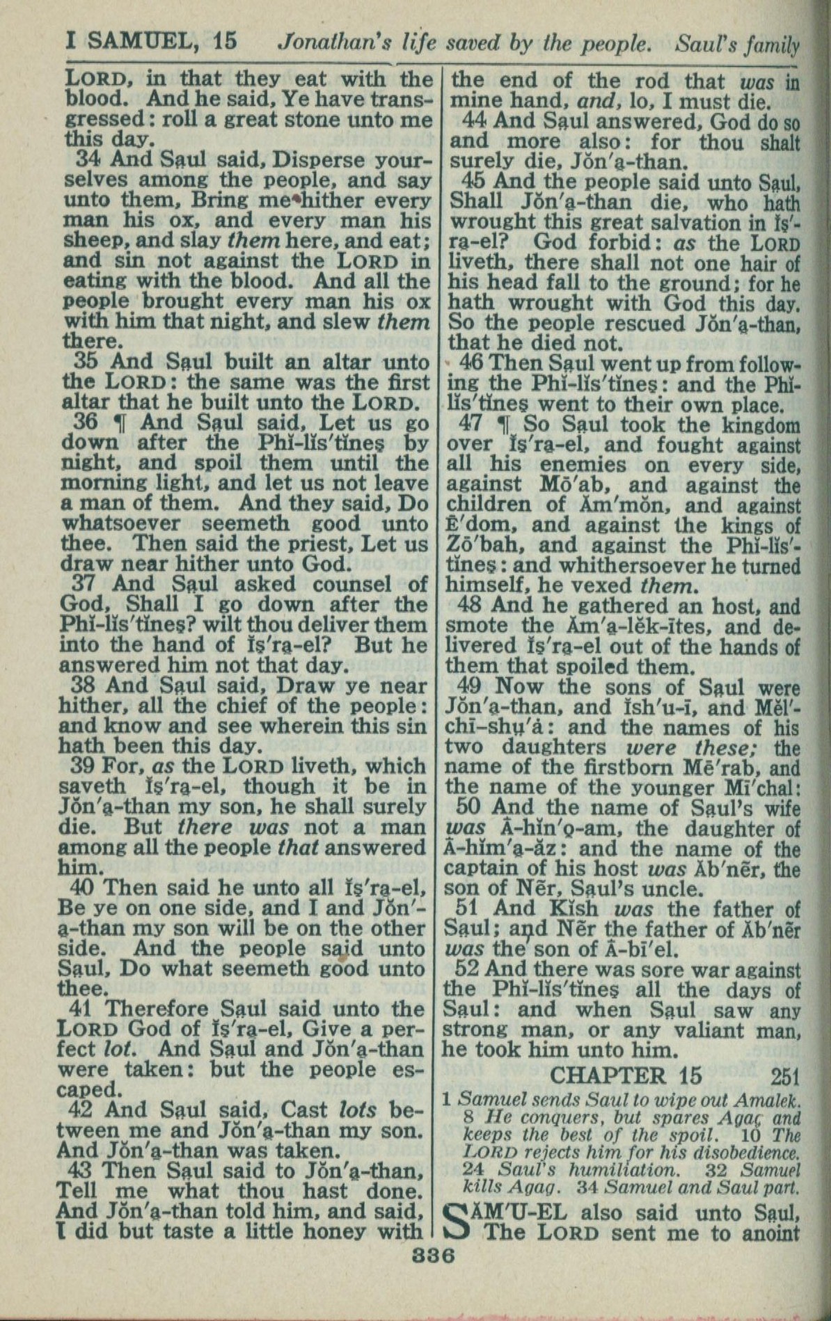 1946年King James Version 撒母耳記上 14 章 34 節到 15 章 1 節