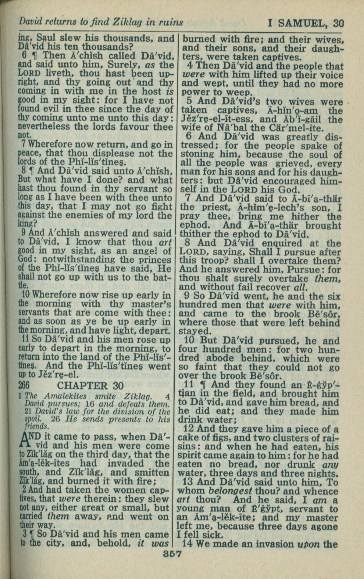 1946年King James Version 撒母耳記上 29 章 6 節到 30 章 13 節