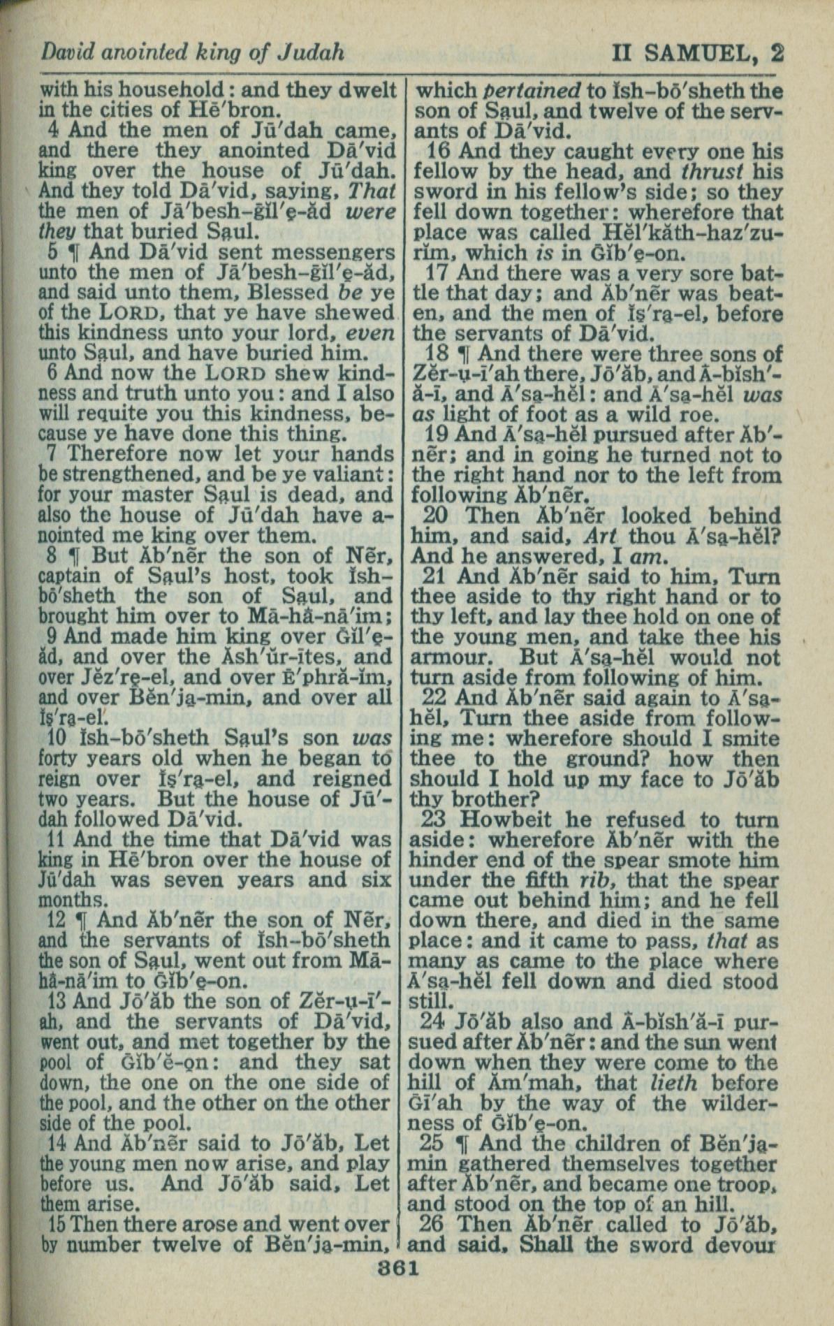 1946年King James Version 撒母耳記下 2 章 4 節到 2 章 26 節