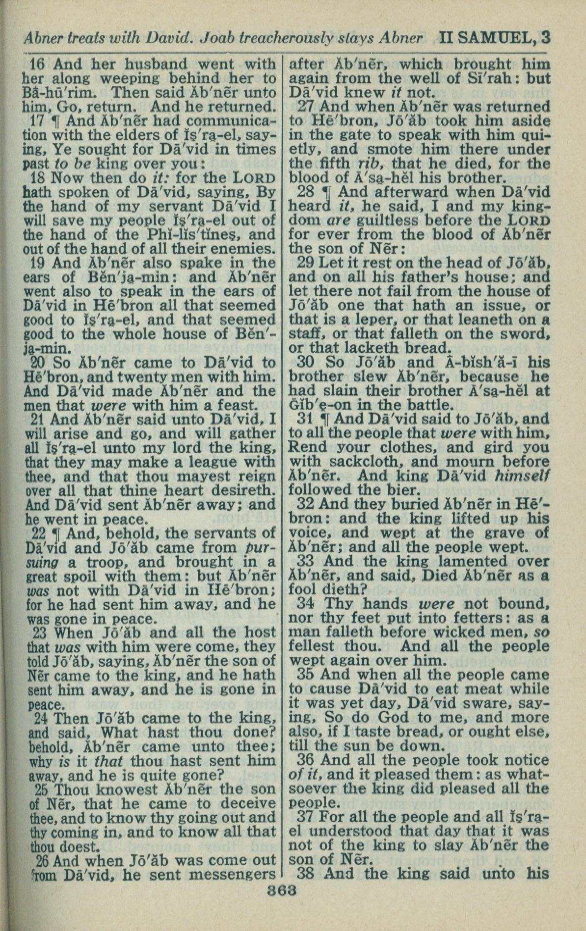 1946年King James Version 撒母耳記下 3 章 16 節到 3 章 38 節