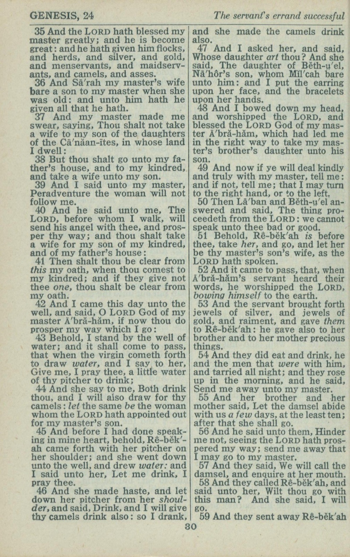 1946年King James Version 創世記 24 章 35 節到 24 章 59 節