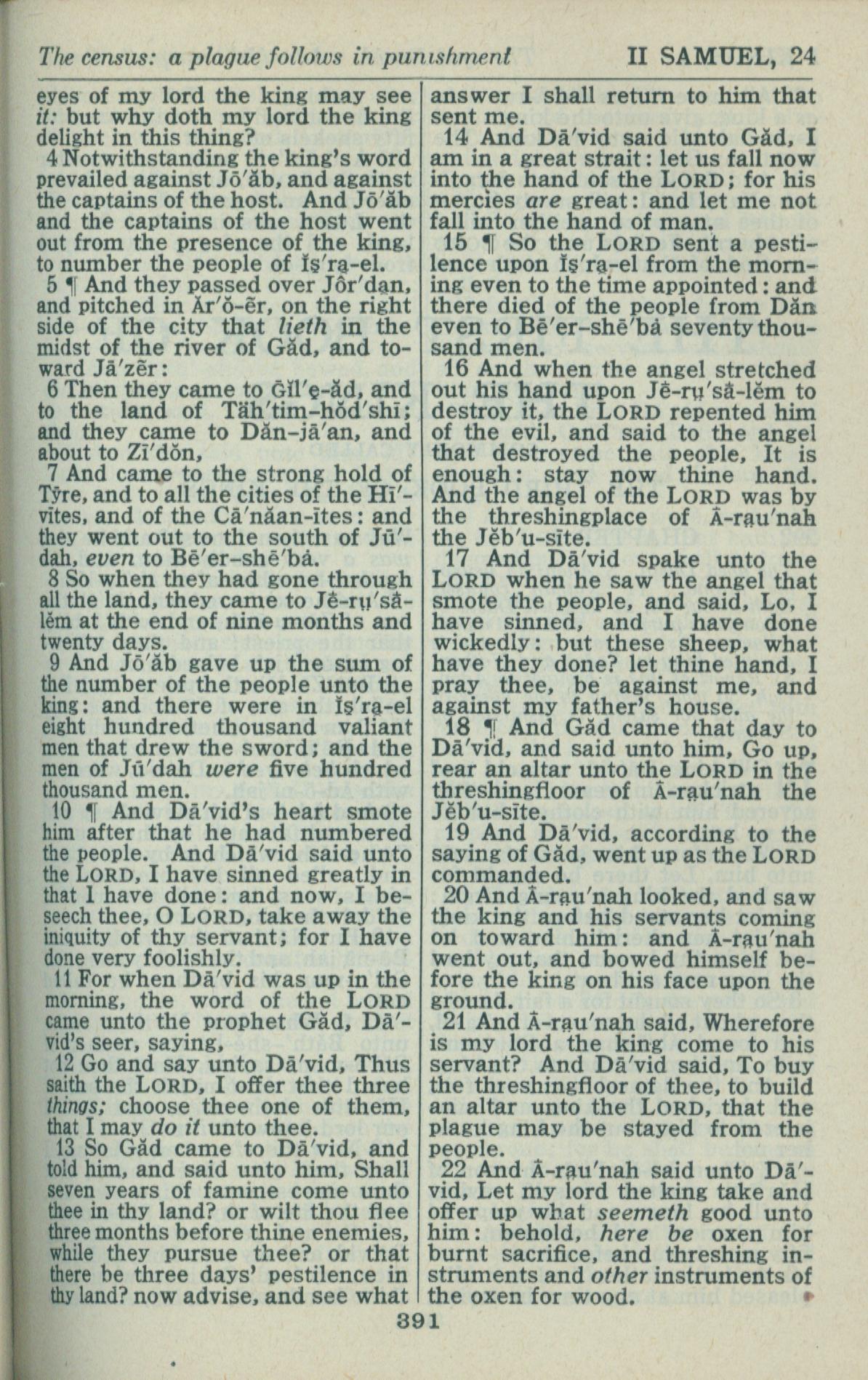 1946年King James Version 撒母耳記下 24 章 4 節到 24 章 22 節