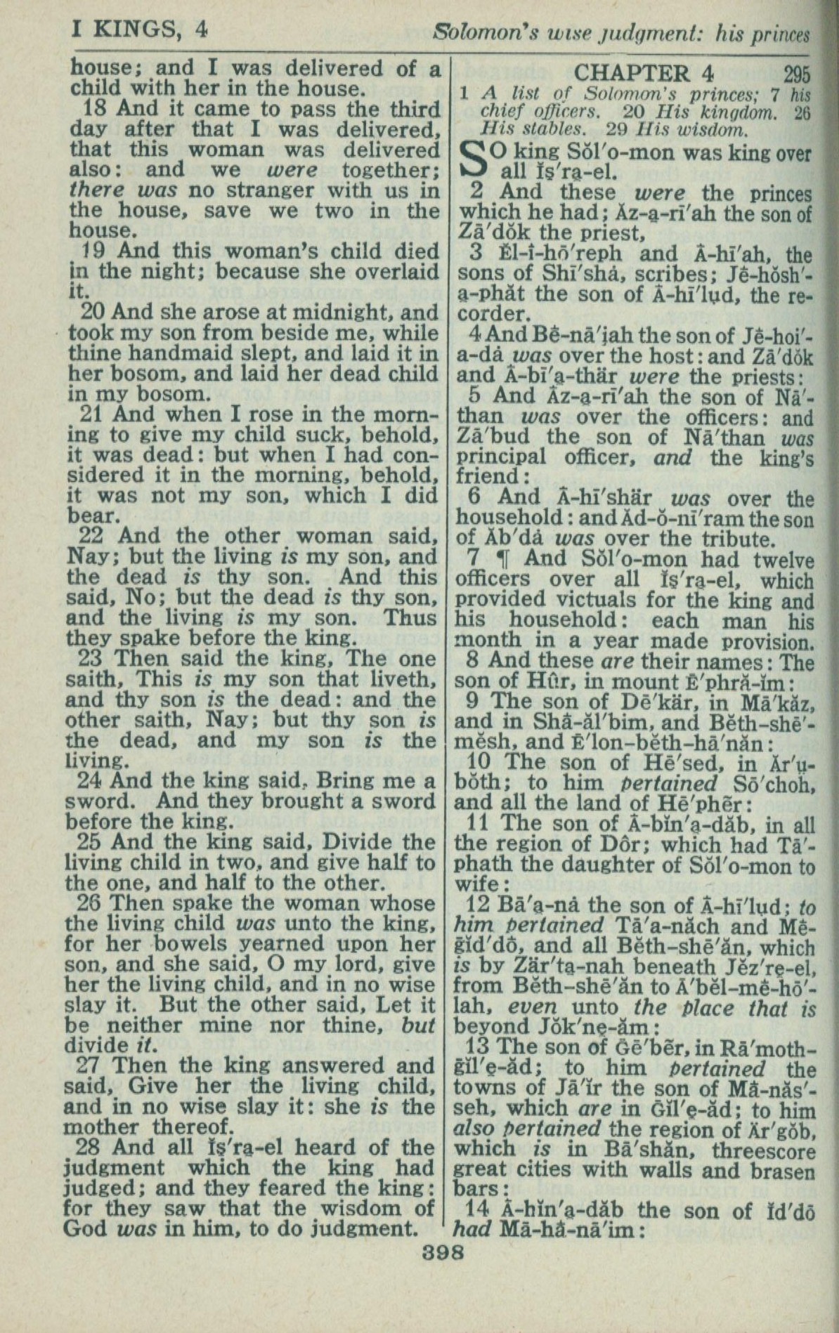 1946年King James Version 列王紀上 3 章 18 節到 4 章 14 節