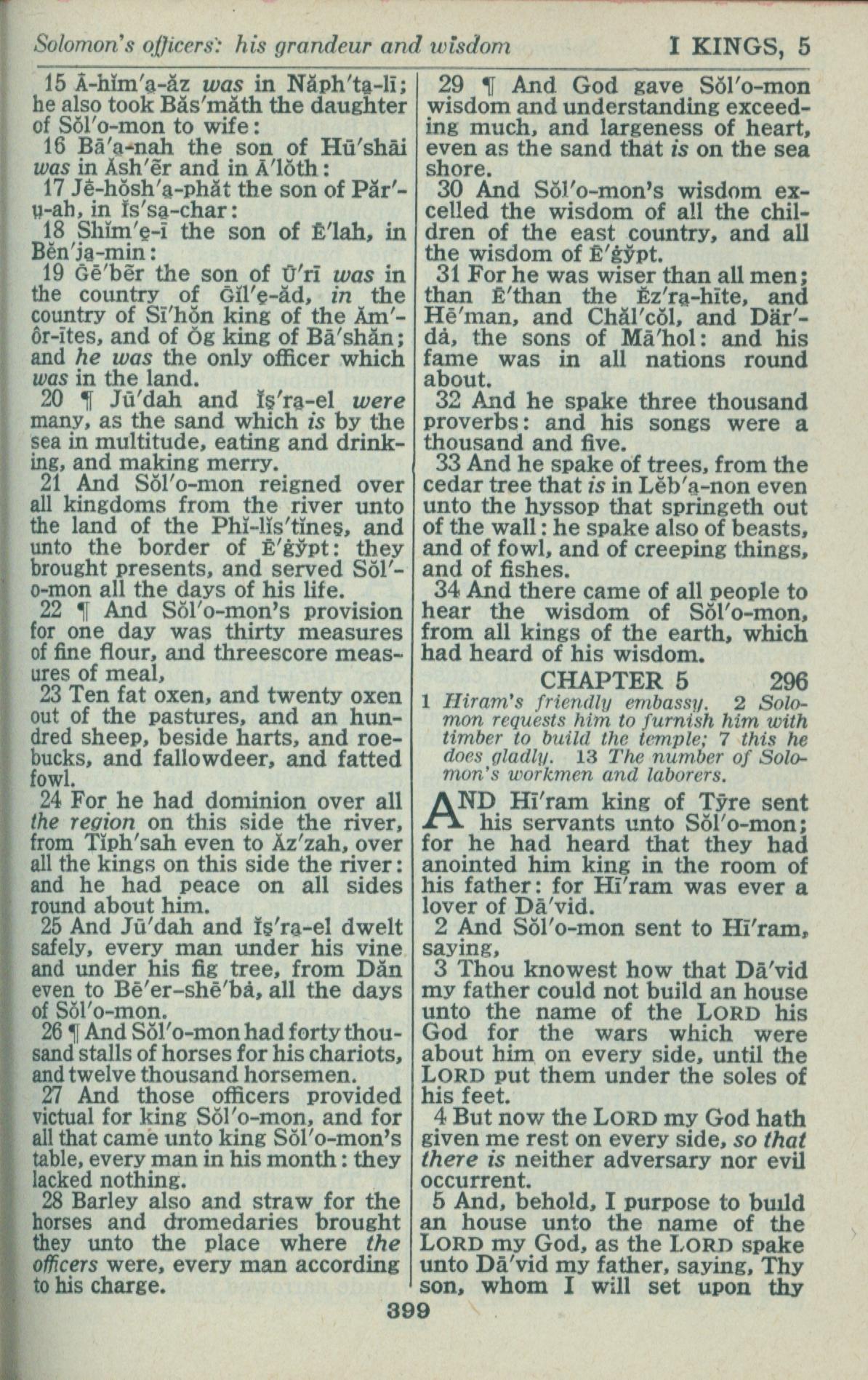 1946年King James Version 列王紀上 4 章 15 節到 5 章 5 節
