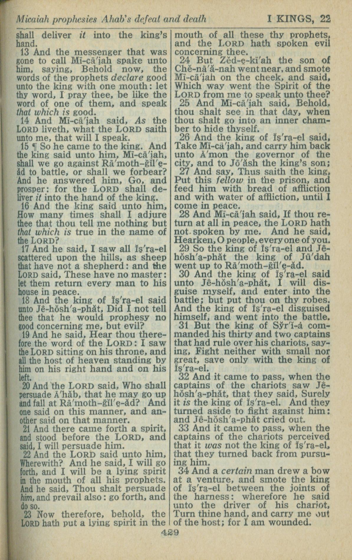 1946年King James Version 列王紀上 22 章 13 節到 22 章 34 節