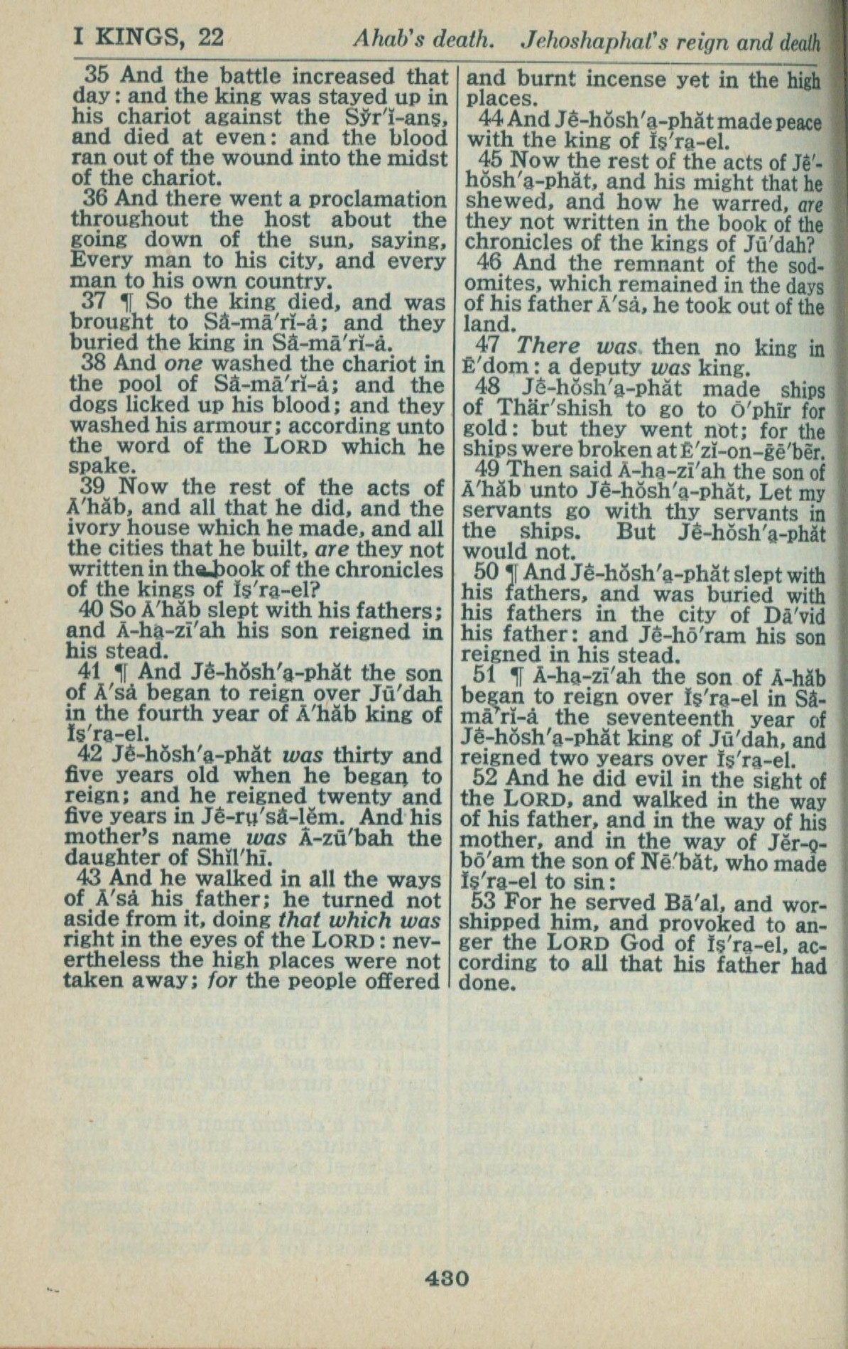 1946年King James Version 列王紀上 22 章 35 節到 22 章 53 節