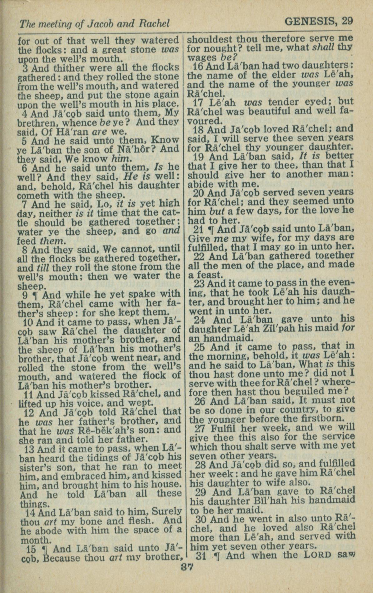 1946年King James Version 創世記 29 章 3 節到 29 章 31 節