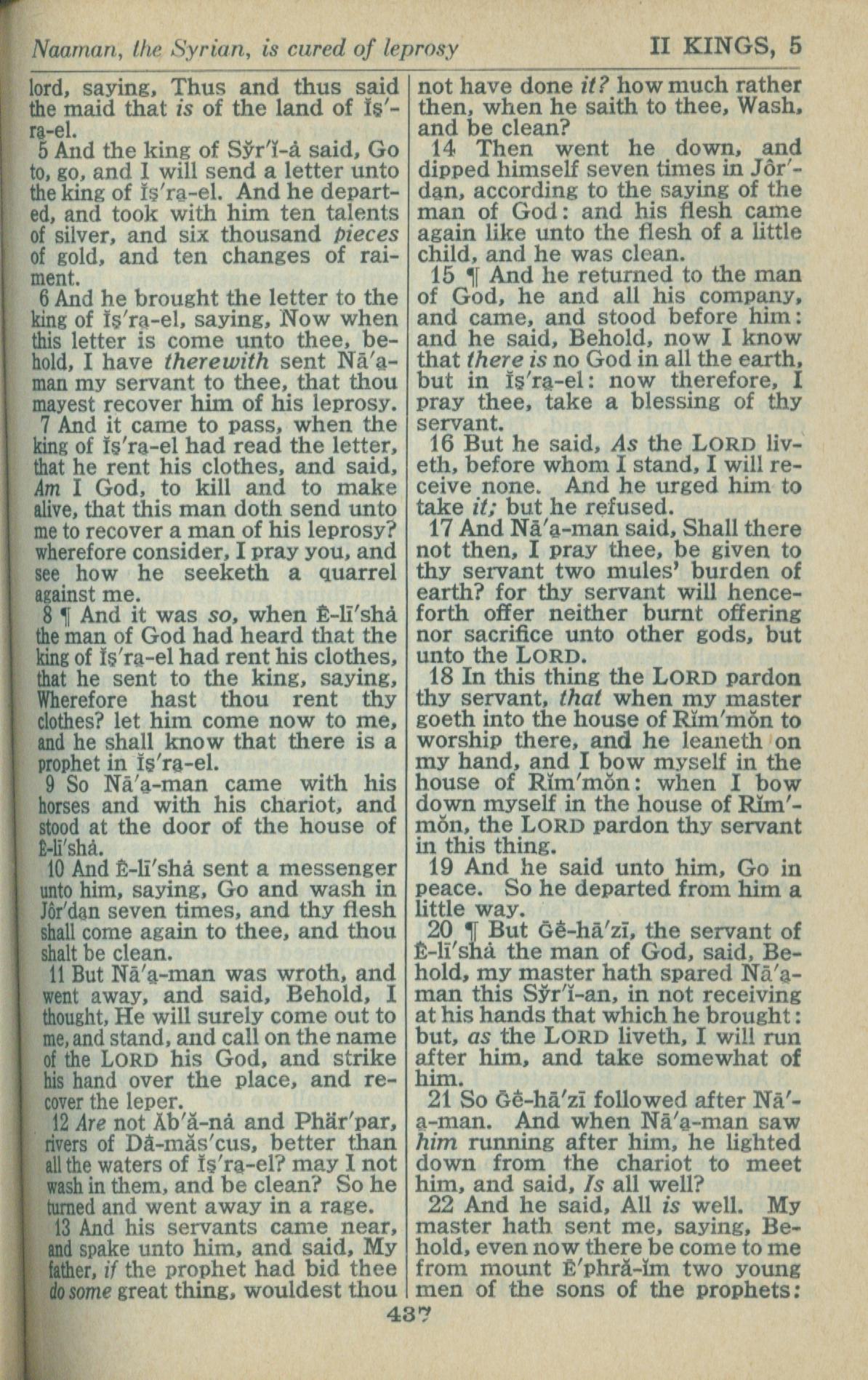 1946年King James Version 列王紀下 5 章 5 節到 5 章 22 節
