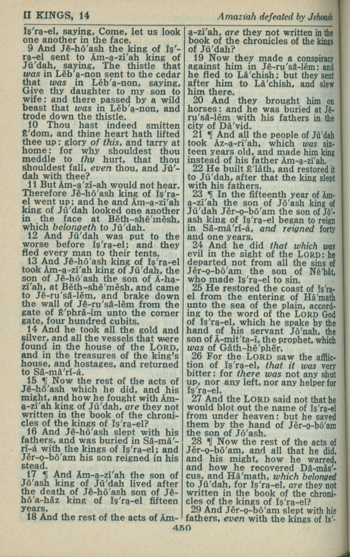 1946年King James Version 列王紀下 14 章 9 節到 14 章 29 節