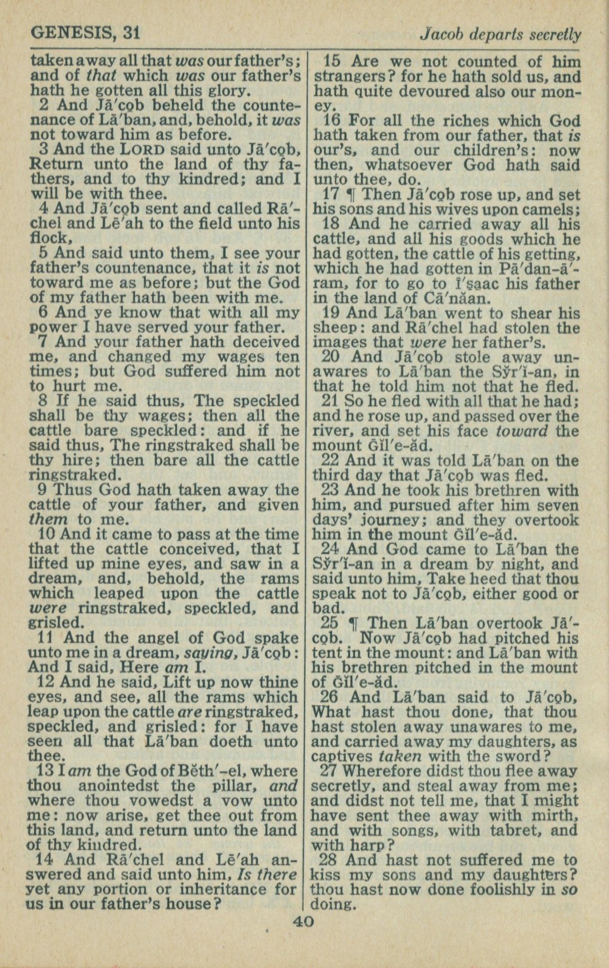 1946年King James Version 創世記 31 章 2 節到 31 章 28 節