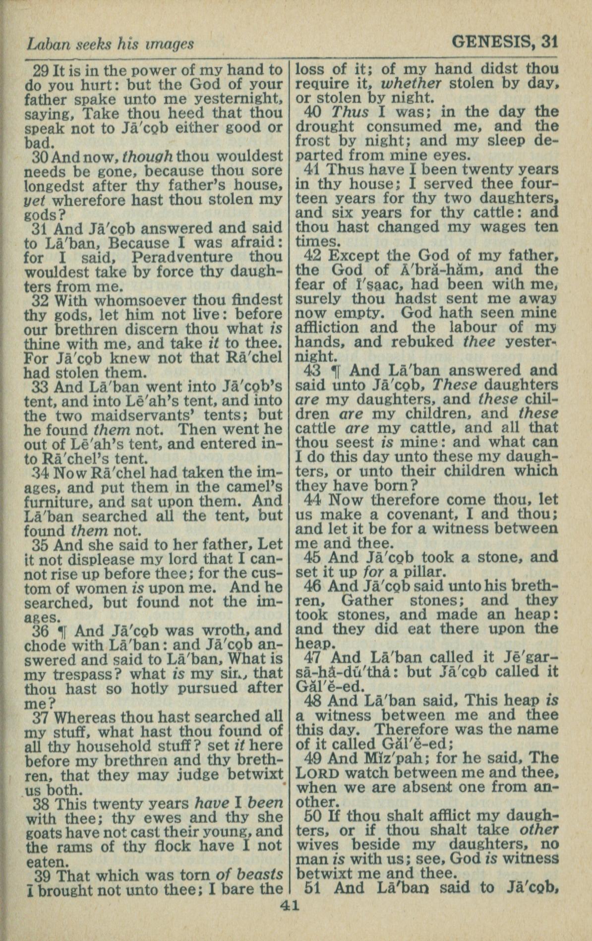 1946年King James Version 創世記 31 章 29 節到 31 章 51 節