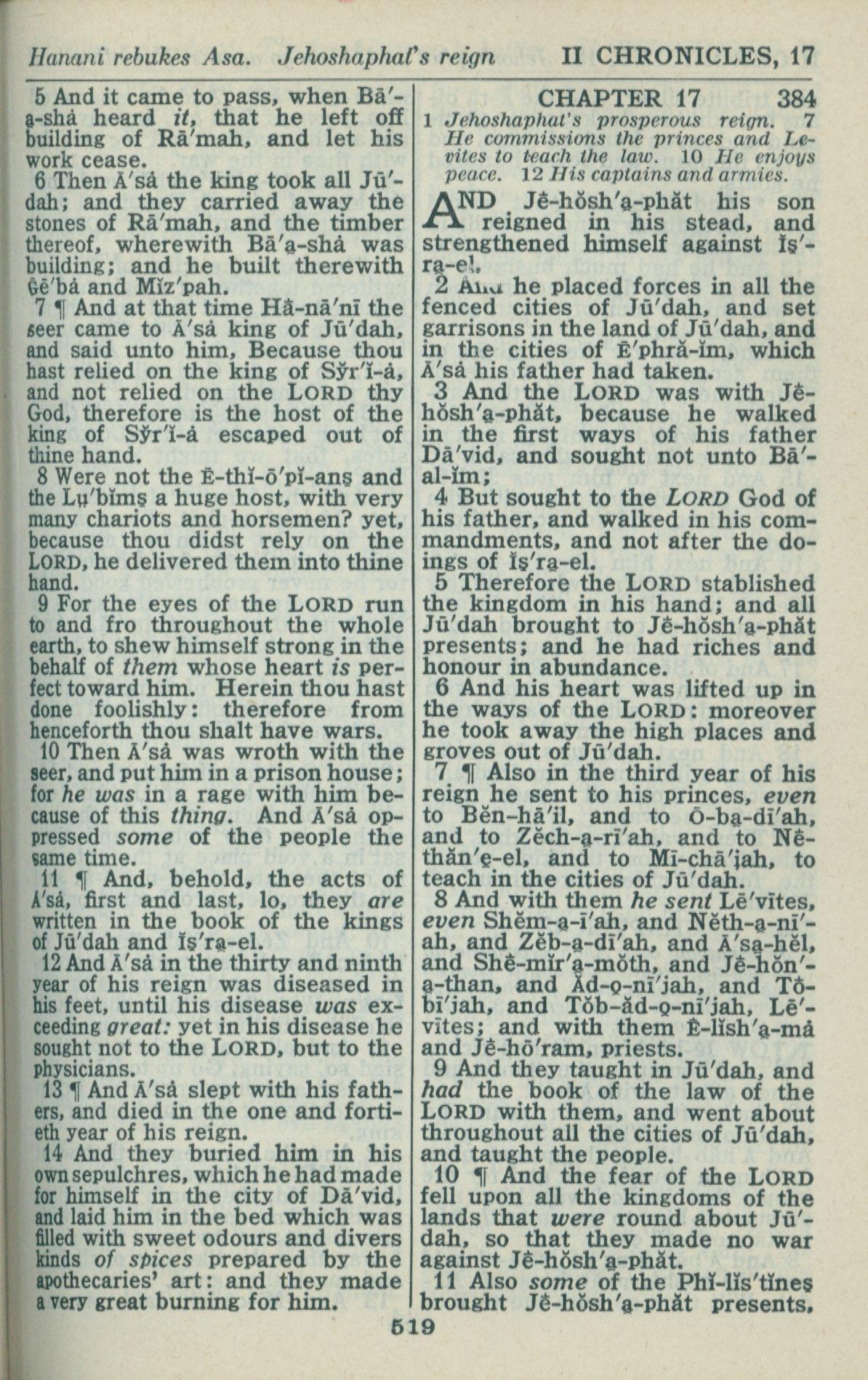1946年King James Version 歷代志下 16 章 5 節到 17 章 11 節