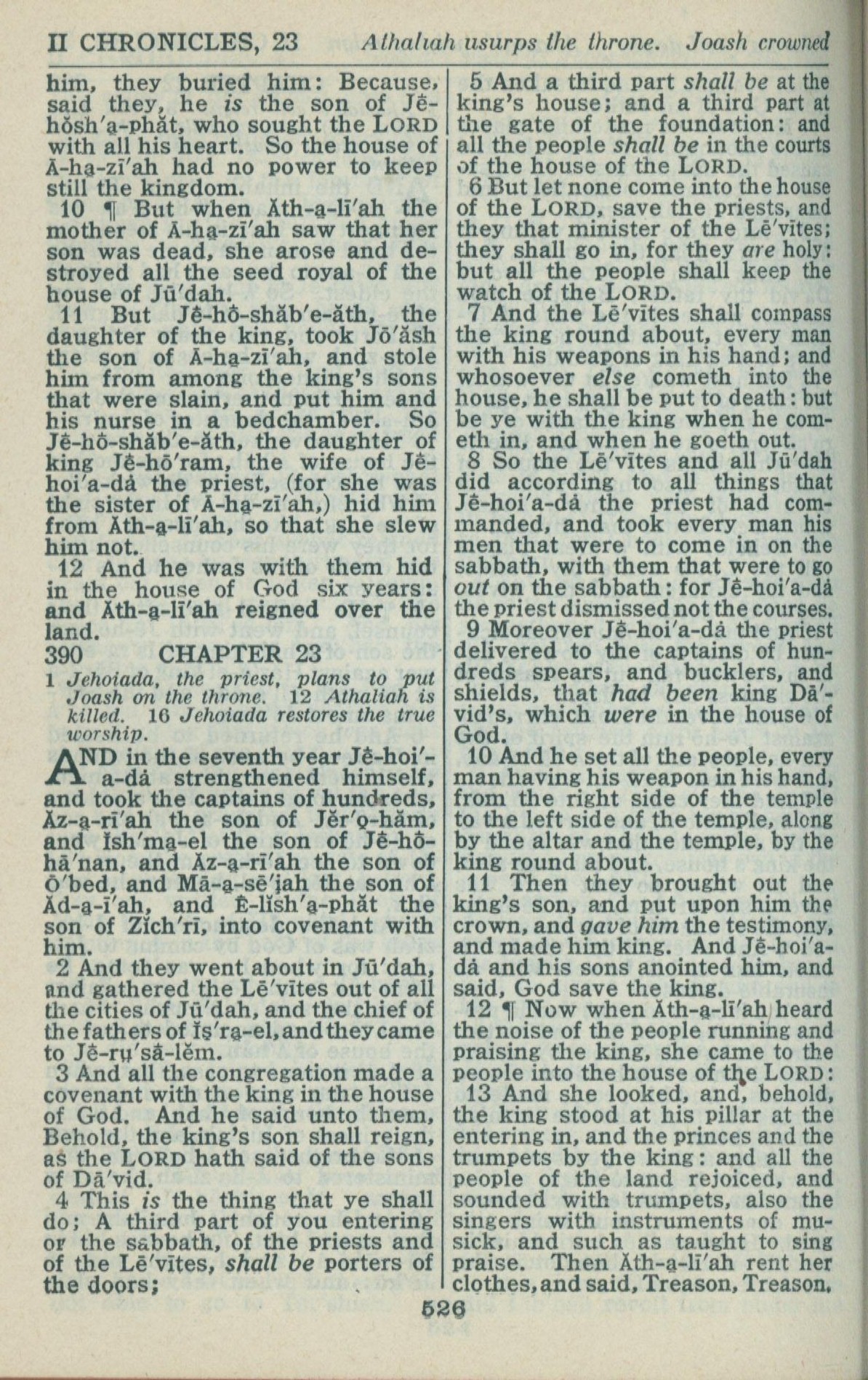 1946年King James Version 歷代志下 22 章 10 節到 23 章 13 節