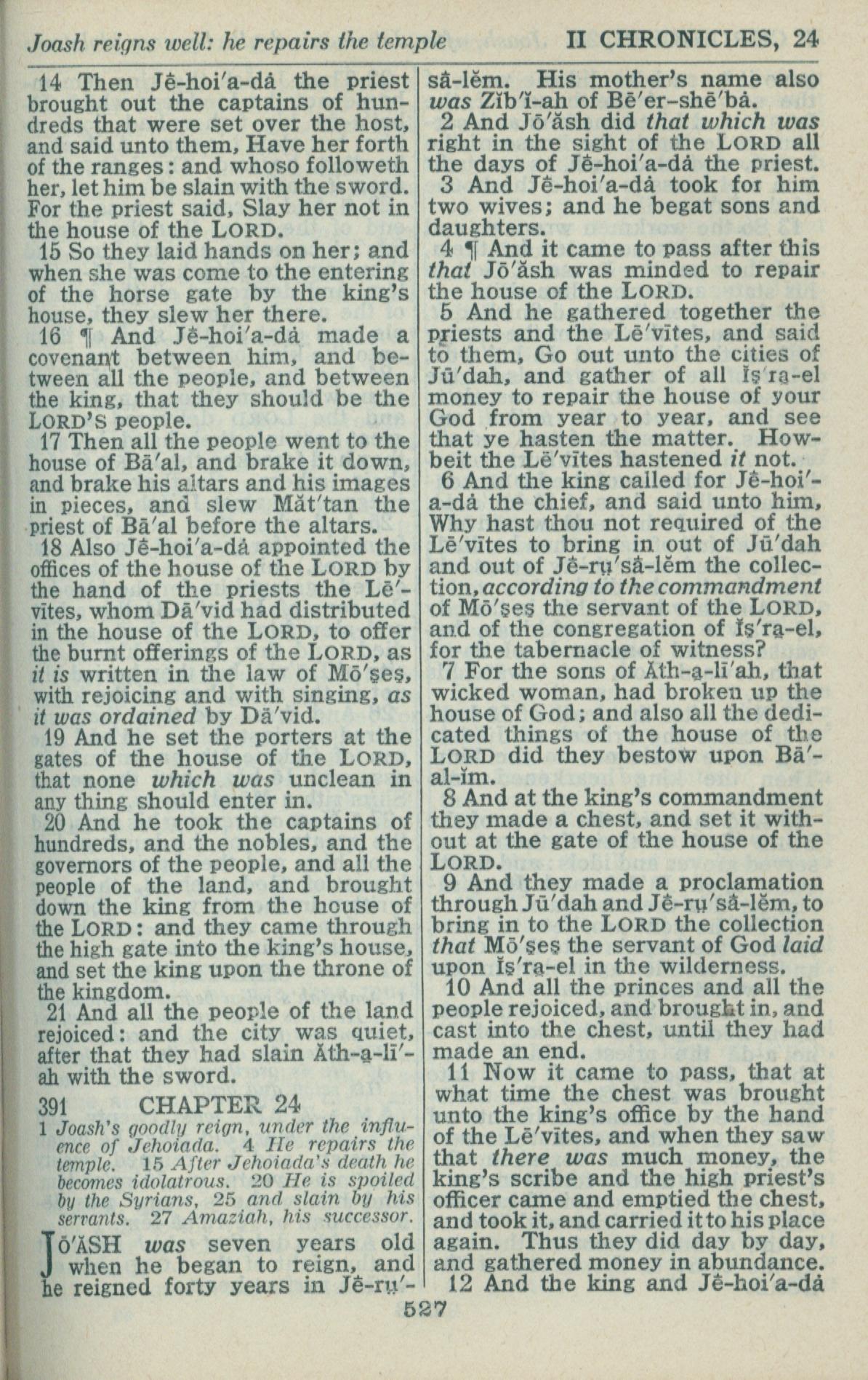 1946年King James Version 歷代志下 23 章 14 節到 24 章 11 節