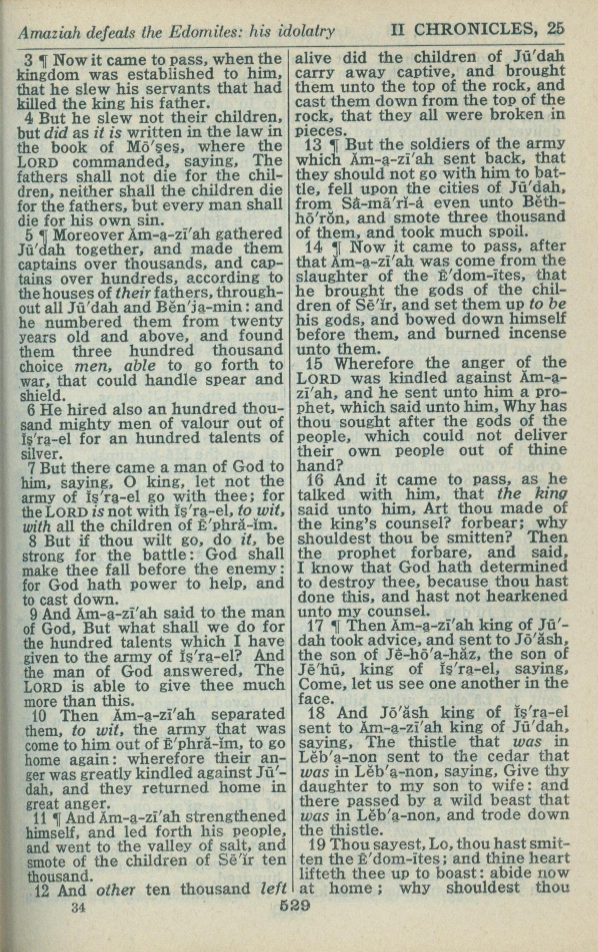 1946年King James Version 歷代志下 25 章 3 節到 25 章 19 節
