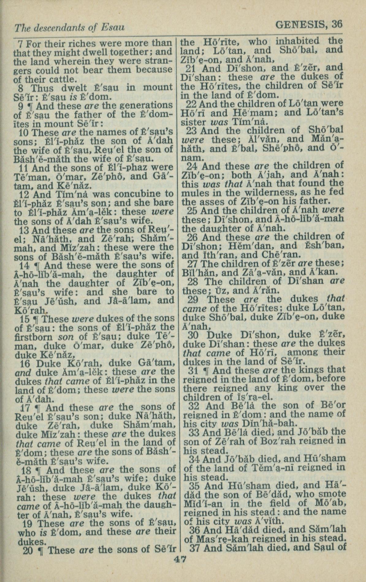 1946年King James Version 創世記 36 章 7 節到 36 章 37 節