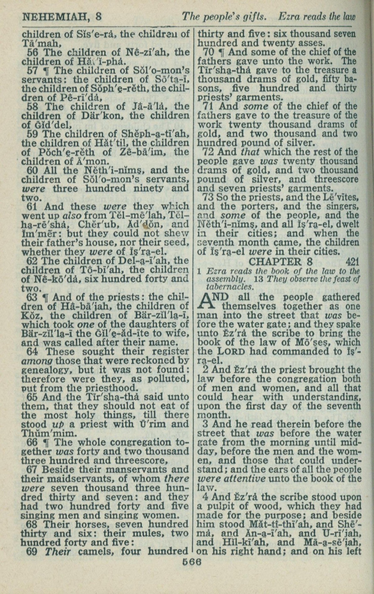 1946年King James Version 尼希米記 7 章 56 節到 8 章 4 節