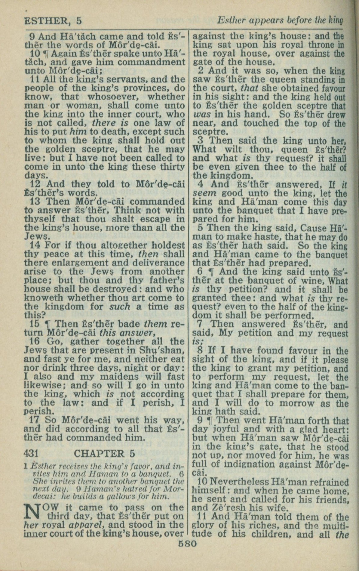 1946年King James Version 以斯帖記 4 章 9 節到 5 章 11 節