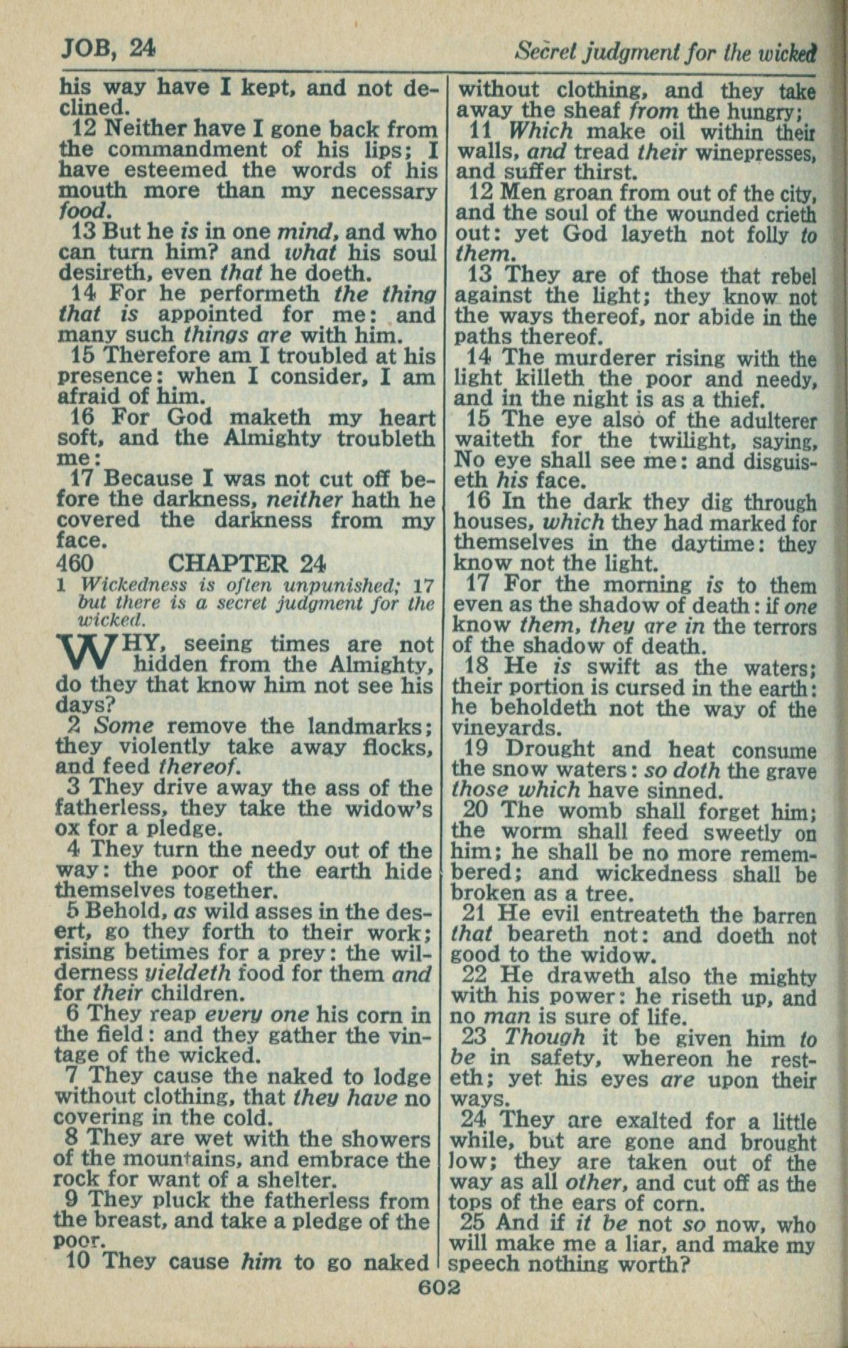 1946年King James Version 約伯記 23 章 12 節到 24 章 25 節