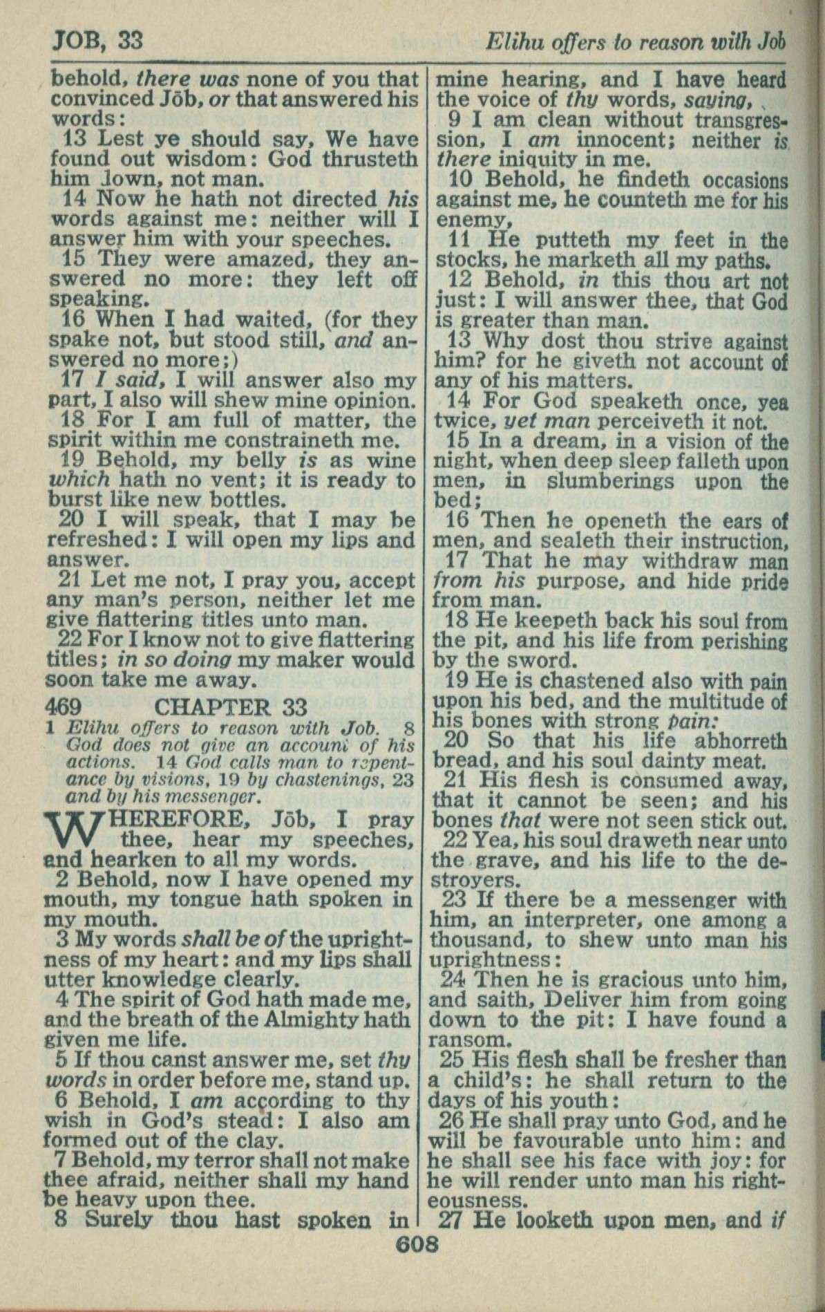 1946年King James Version 約伯記 32 章 13 節到 33 章 27 節