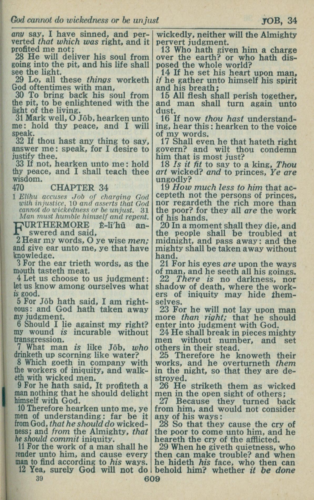 1946年King James Version 約伯記 33 章 28 節到 34 章 29 節