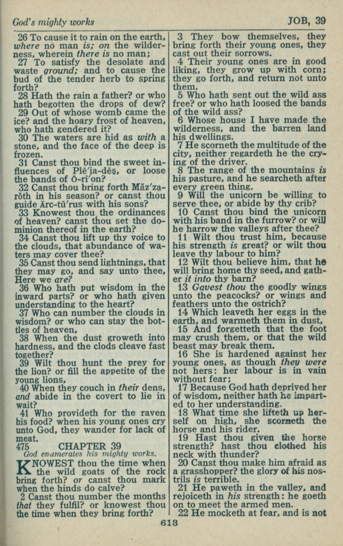 1946年King James Version 約伯記 38 章 26 節到 39 章 22 節