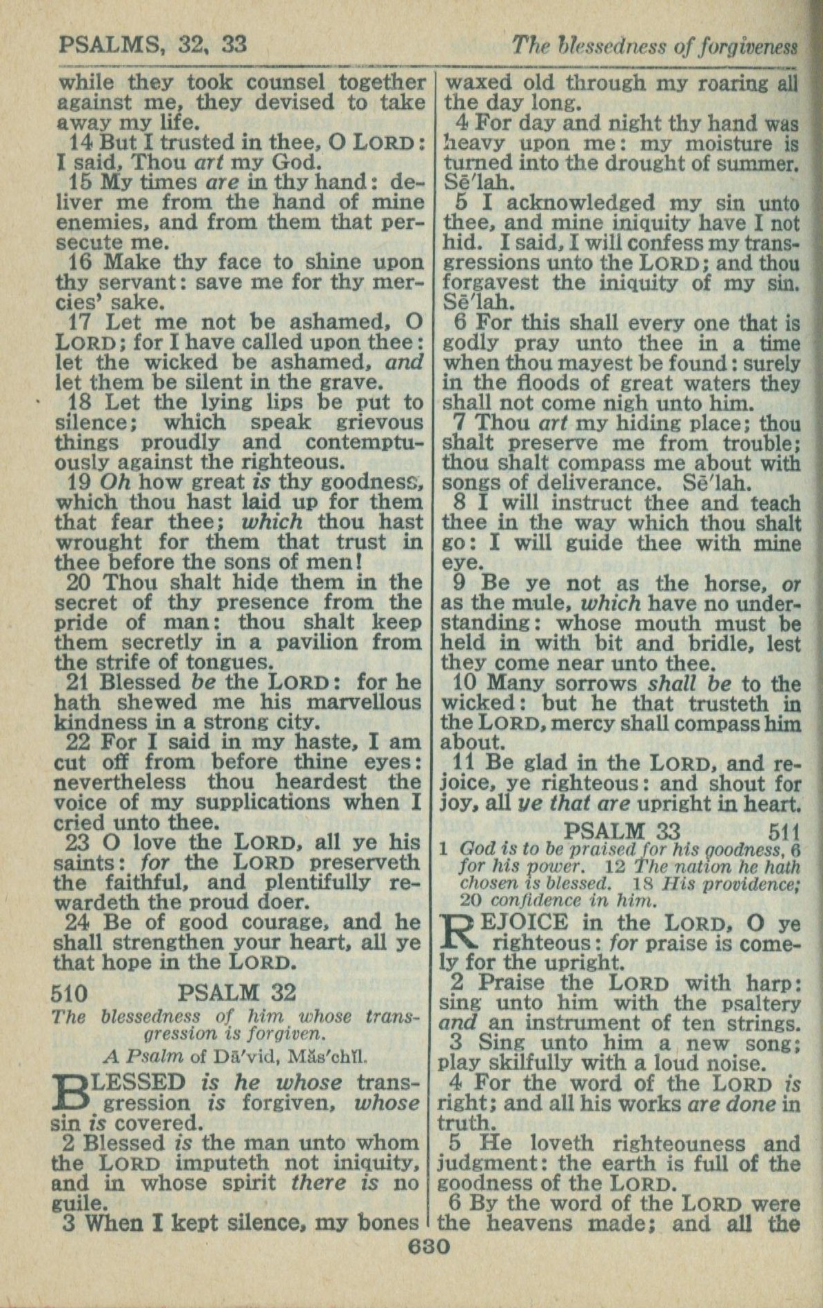 1946年King James Version 詩篇 31 章 14 節到 33 章 6 節
