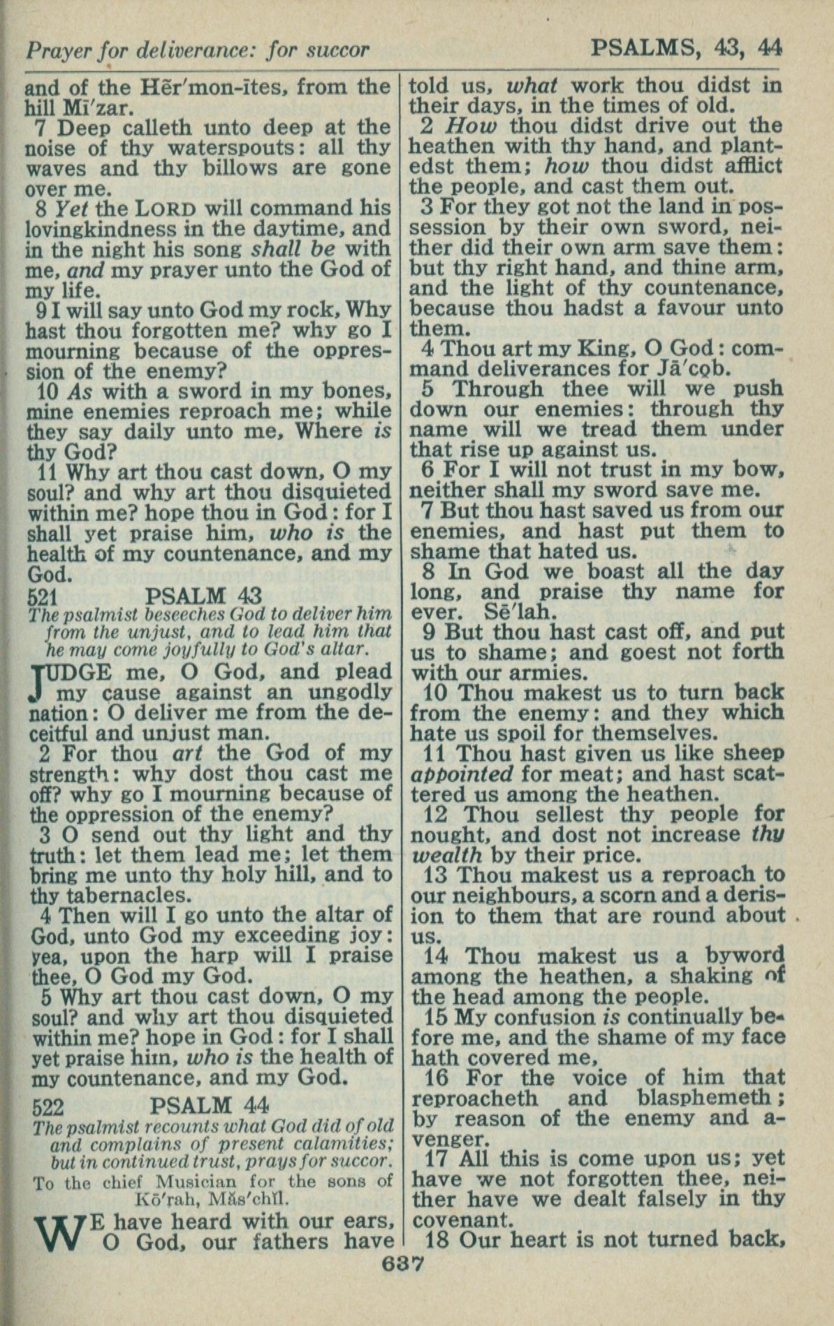 1946年King James Version 詩篇 42 章 7 節到 44 章 18 節