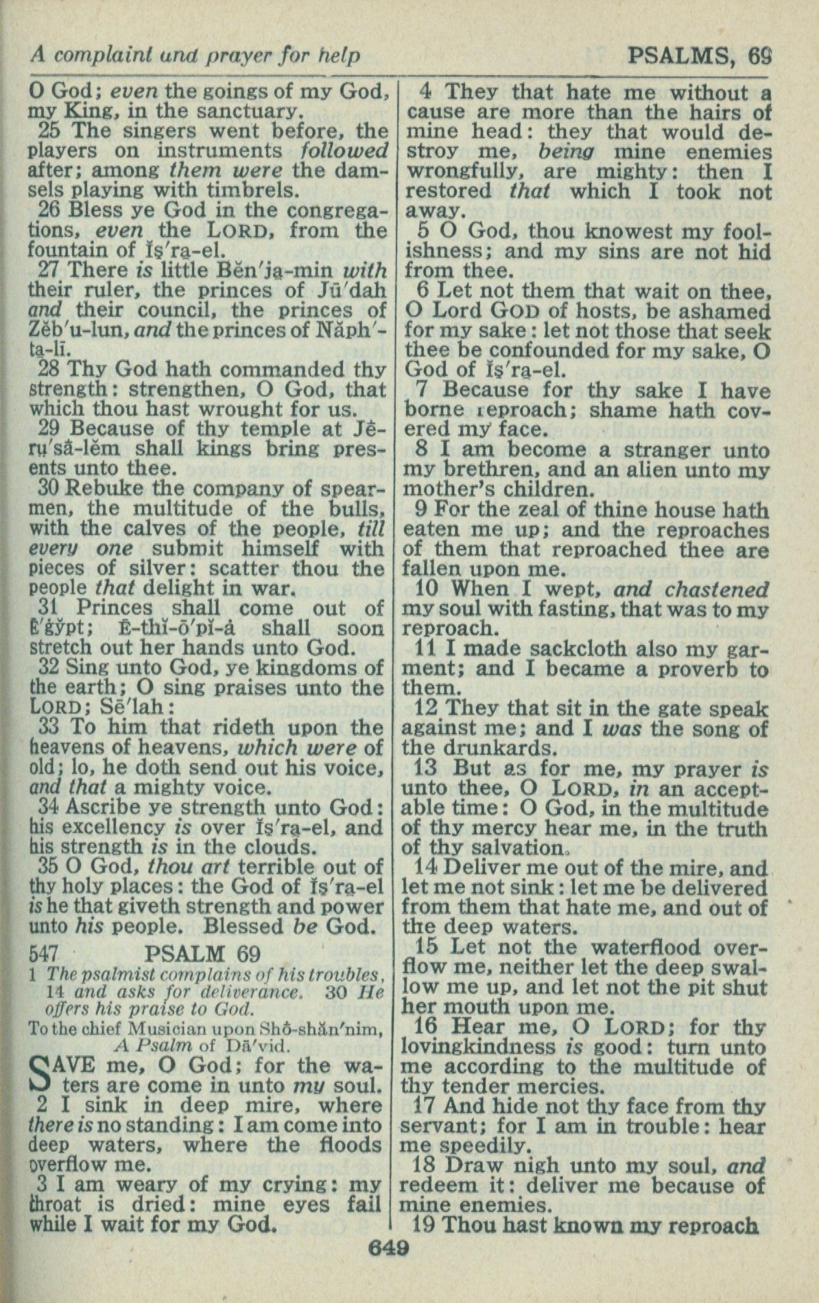 1946年King James Version 詩篇 68 章 25 節到 69 章 19 節