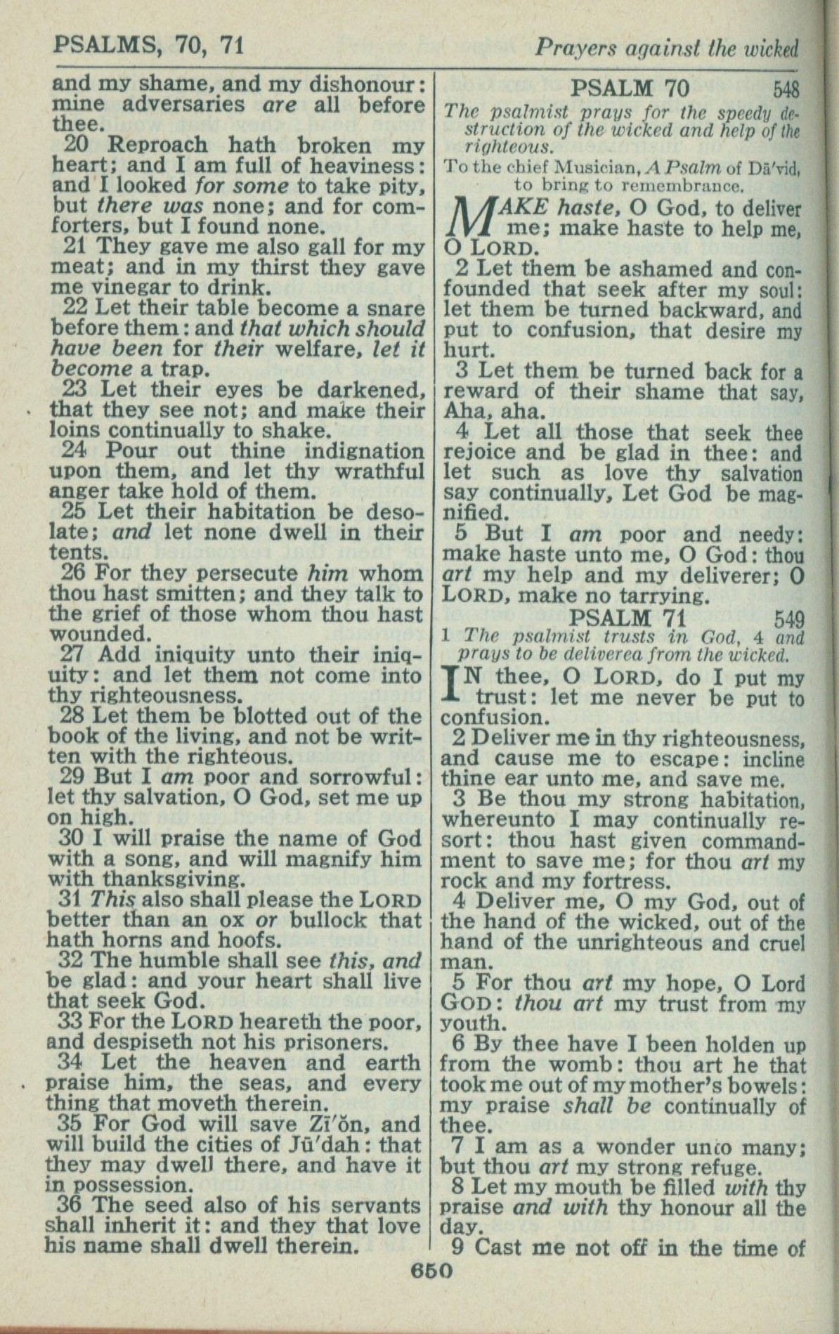 1946年King James Version 詩篇 69 章 20 節到 70 章 9 節