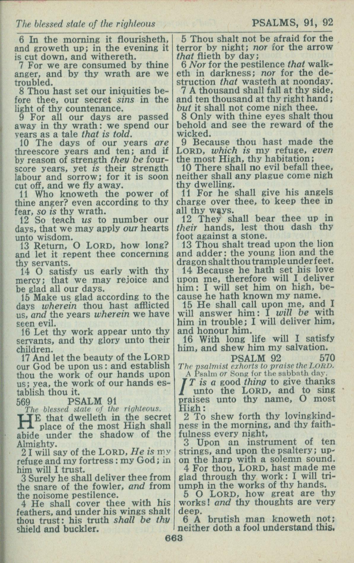 1946年King James Version 詩篇 90 章 6 節到 92 章 6 節