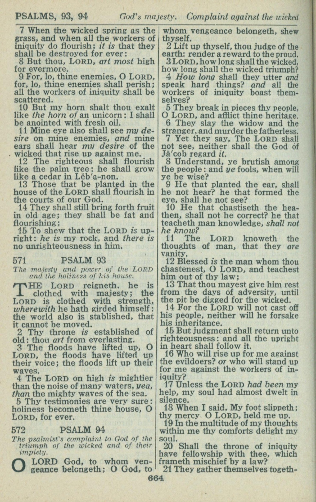 1946年King James Version 詩篇 92 章 7 節到 94 章 21 節