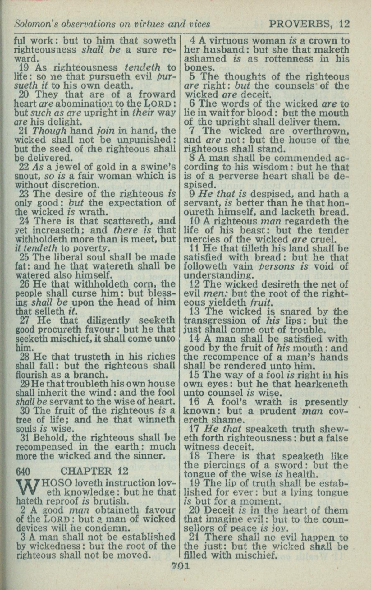 1946年King James Version 箴言 11 章 19 節到 12 章 21 節